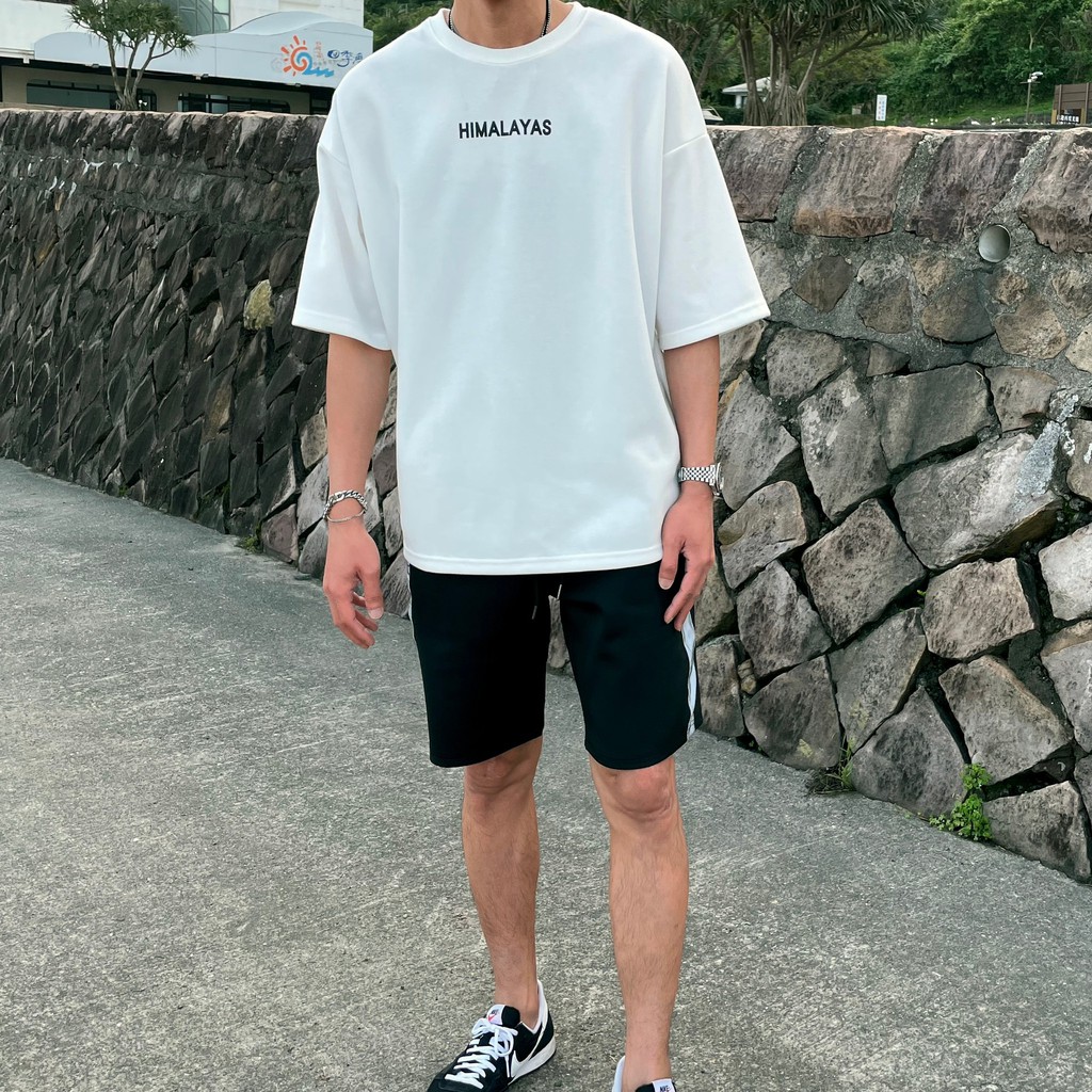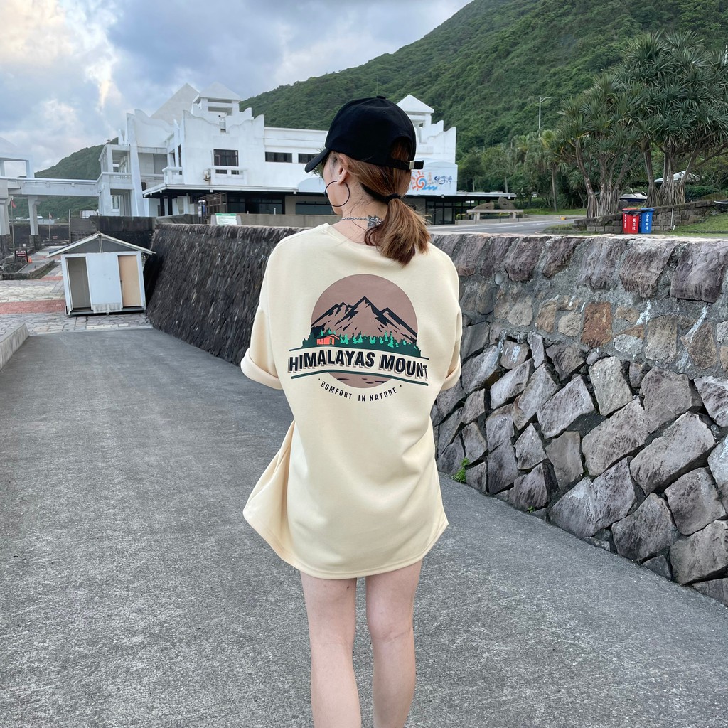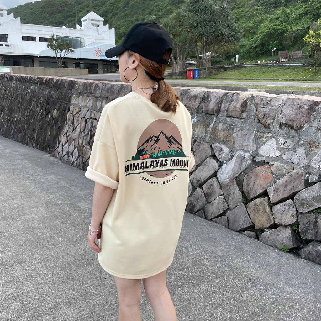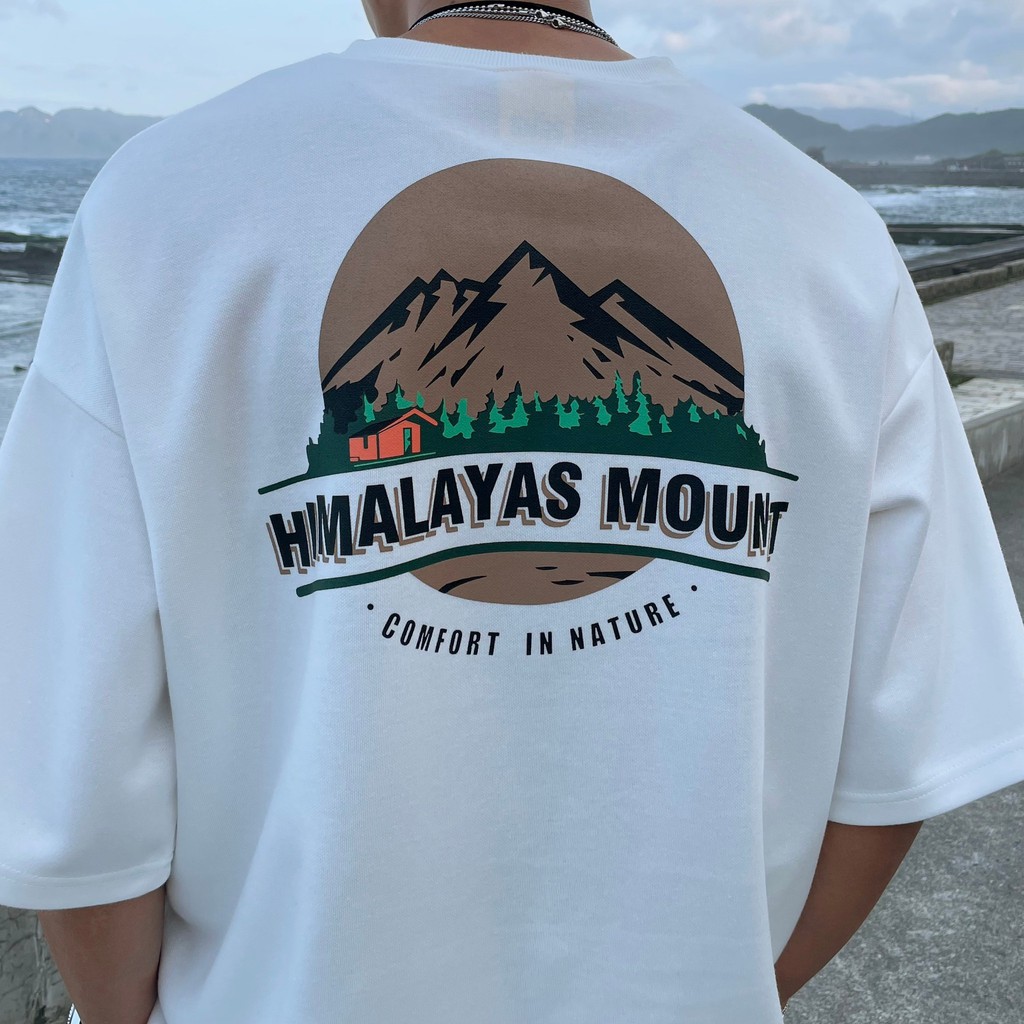 【QIAO】韓國新貨 喜馬拉雅 山脈T 升級細絨棉 高磅 落肩 五分T 短T 男短袖 情侶 露營 情侶裝 短袖 T恤 帥