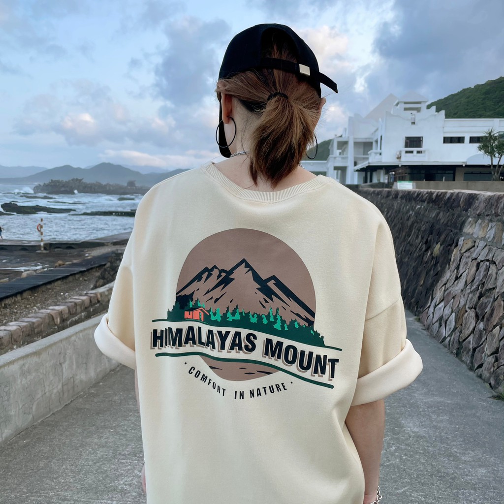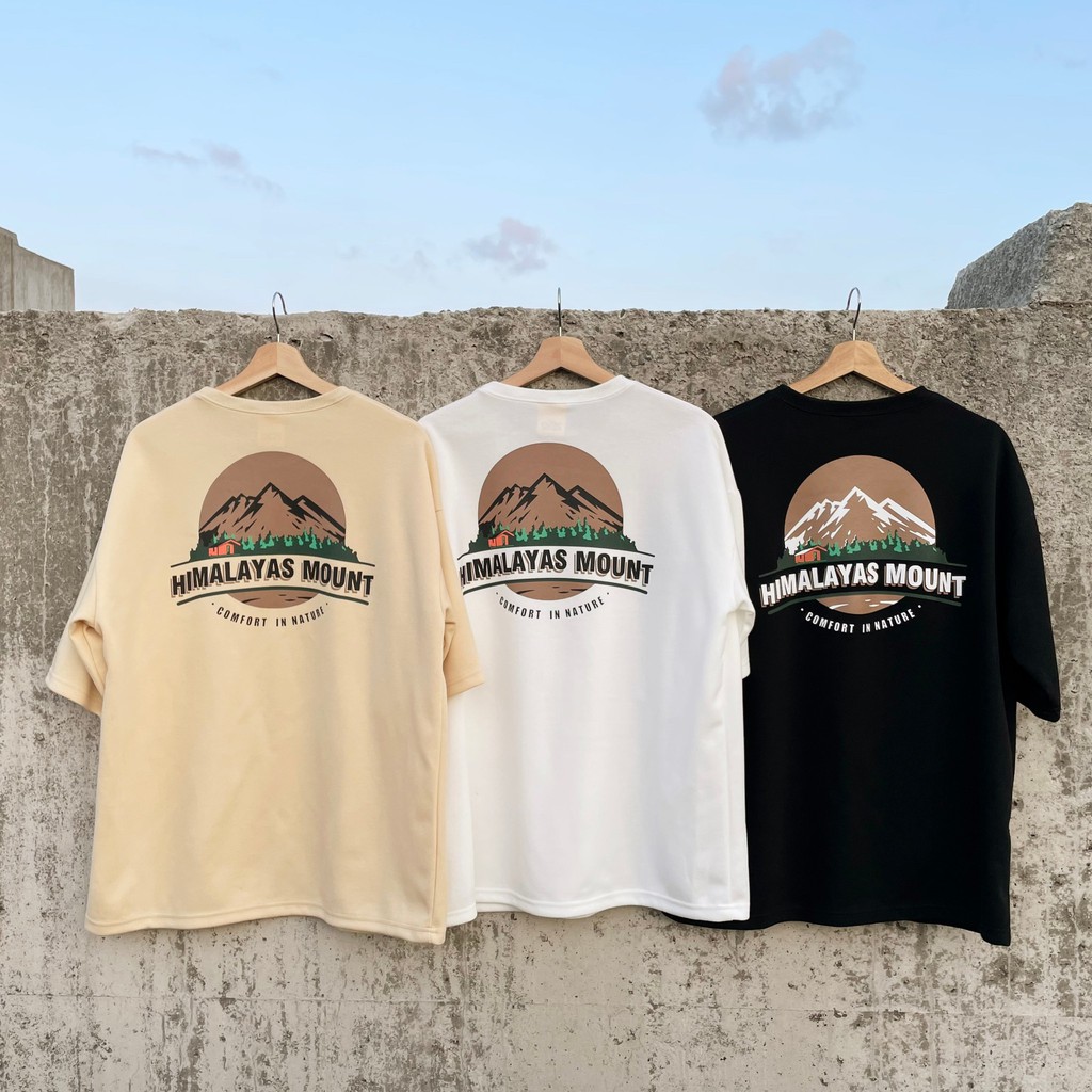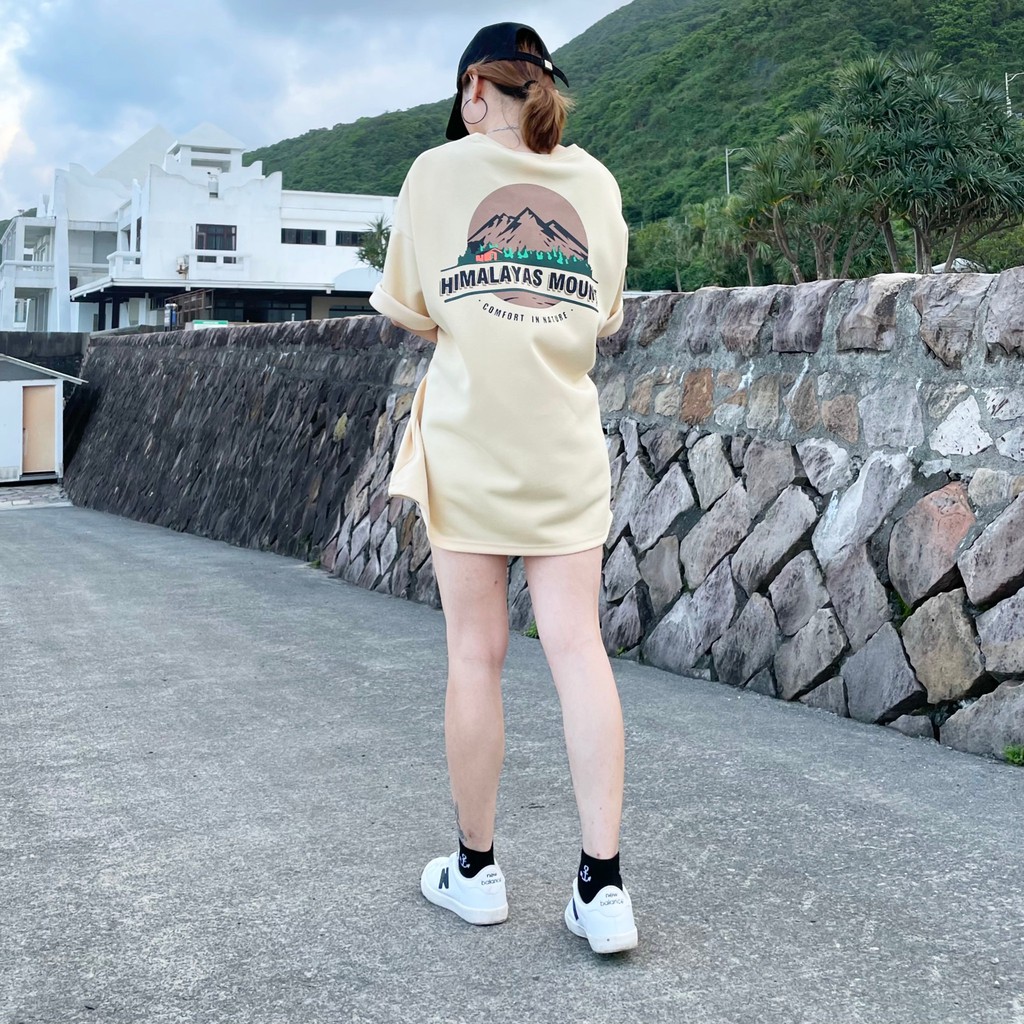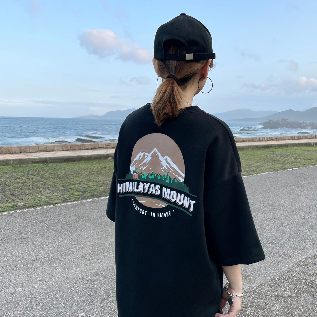 【QIAO】韓國新貨 喜馬拉雅 山脈T 升級細絨棉 高磅 落肩 五分T 短T 男短袖 情侶 露營 情侶裝 短袖 T恤 帥