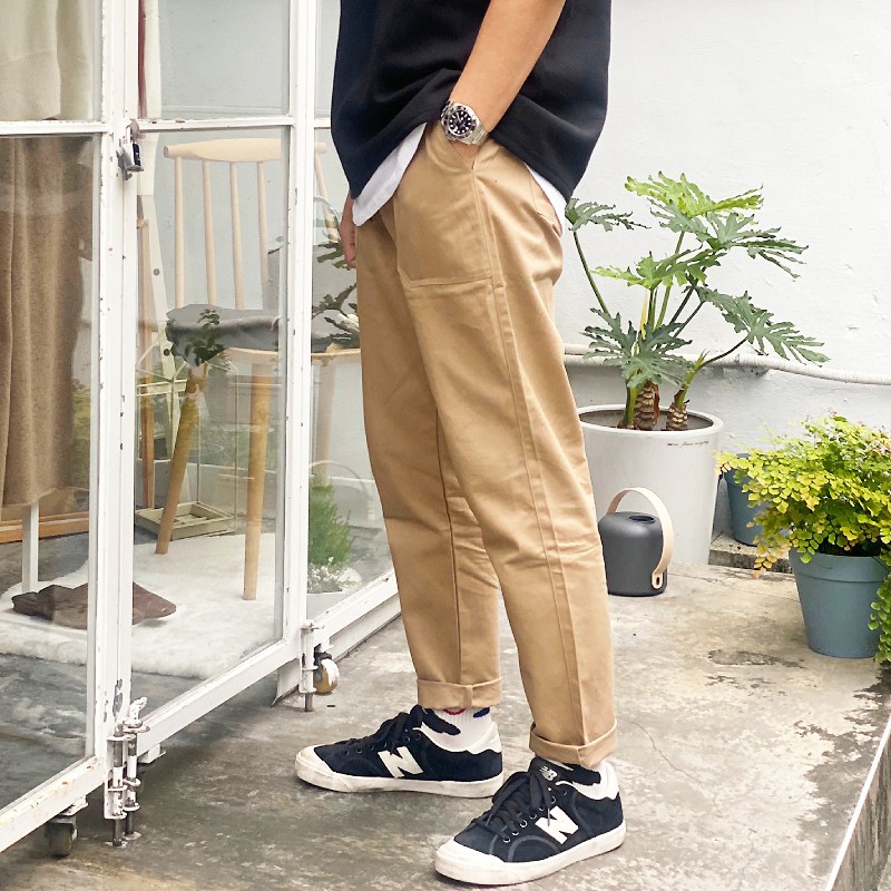 QIAO 新韓國職人 基本素色微寬褲 斜紋布 工裝褲 黑色褲 綠色工作褲 卡其褲 休閒褲 男生長褲 工作長褲 軍裝褲