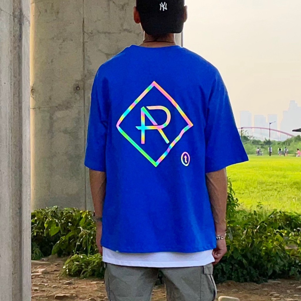 QIAO 韓線最新 Romantic 彩鈦 反光 文字T 棉T 落肩 五分T 寬鬆 彩色反光 男生T恤 短T