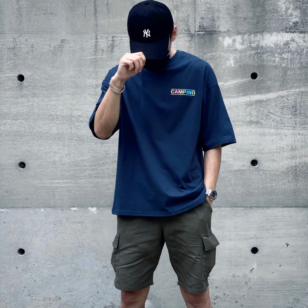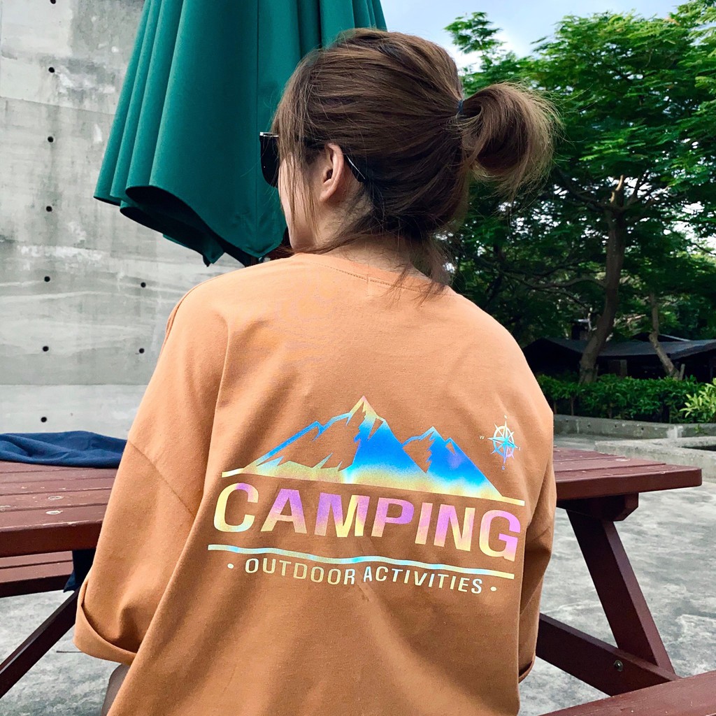 QIAO 韓國新貨 CAMPING 純棉 彩鈦反光 五分T 寬鬆T 露營 戶外 休閒 夜遊 T恤 短袖 短T 旅行