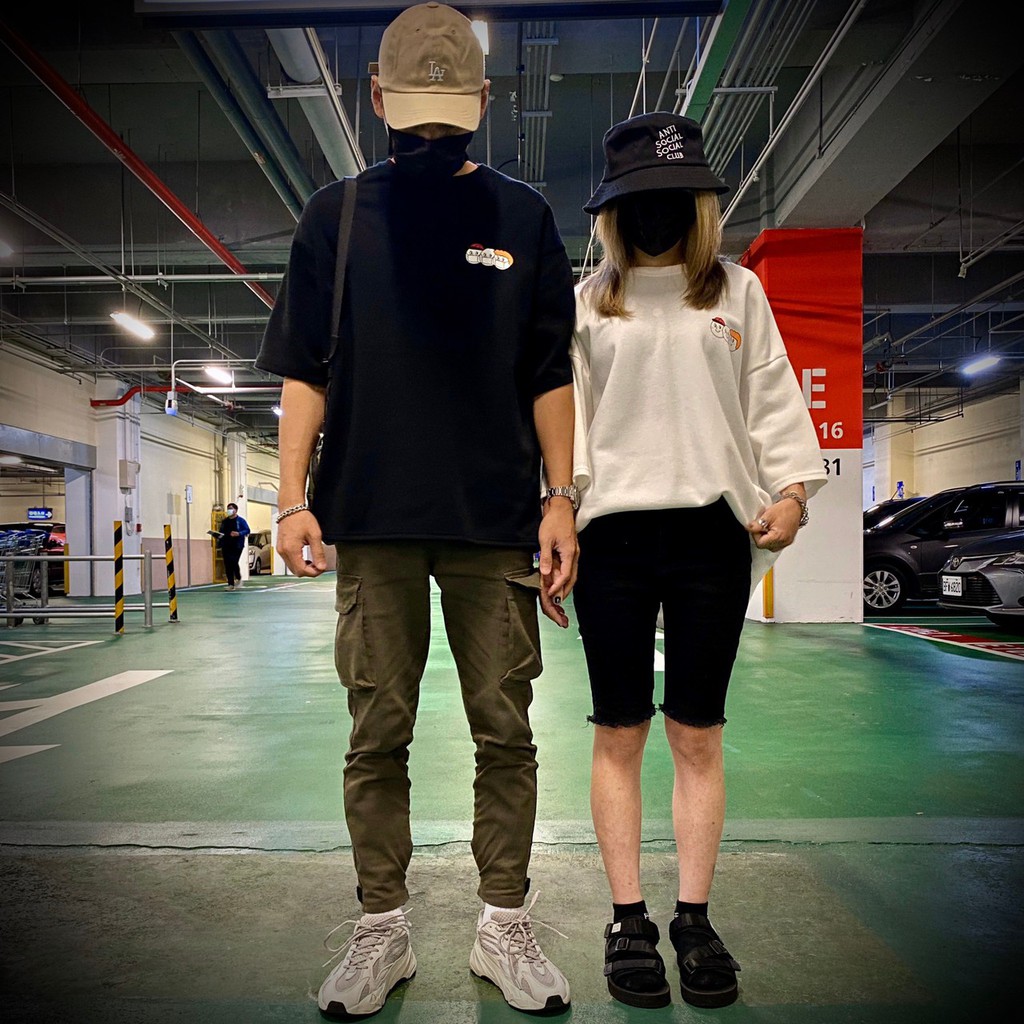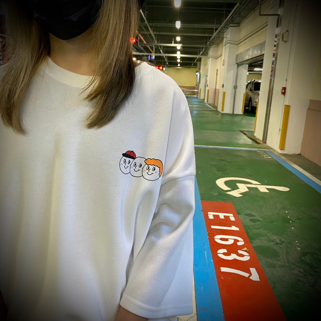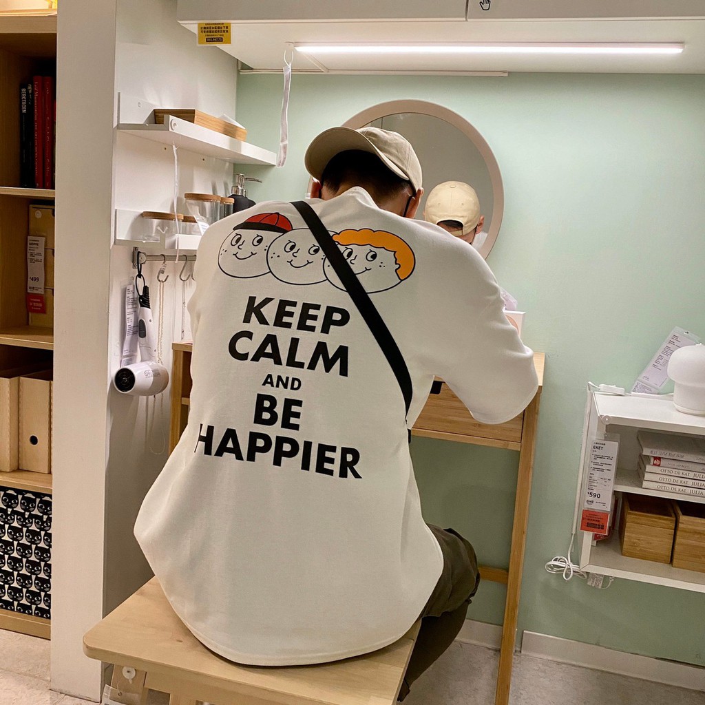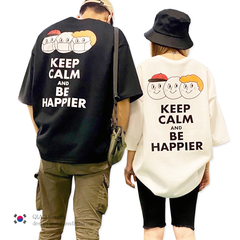 【qiao】韓國 三兄弟 膠印 高挺細絨棉 情侶 保持開朗 落肩 寬袖 五分袖 寬鬆 T恤 短T 韓國T恤 口罩