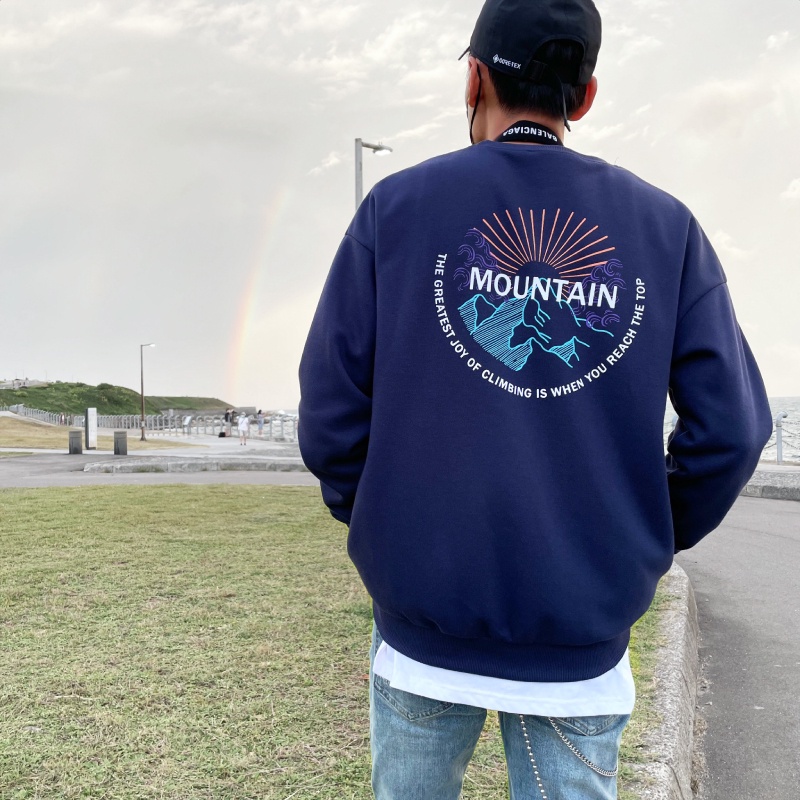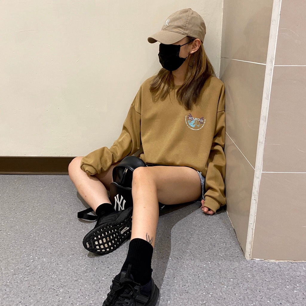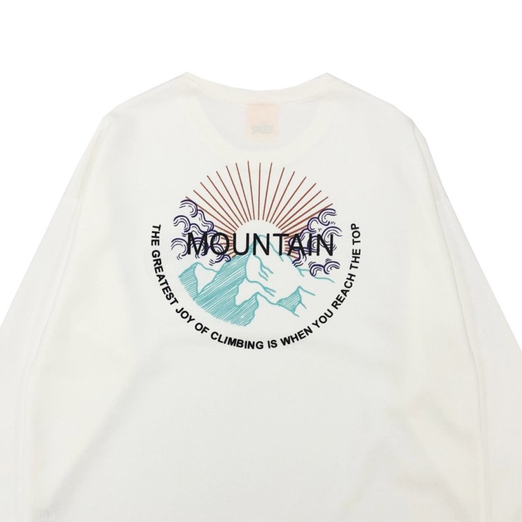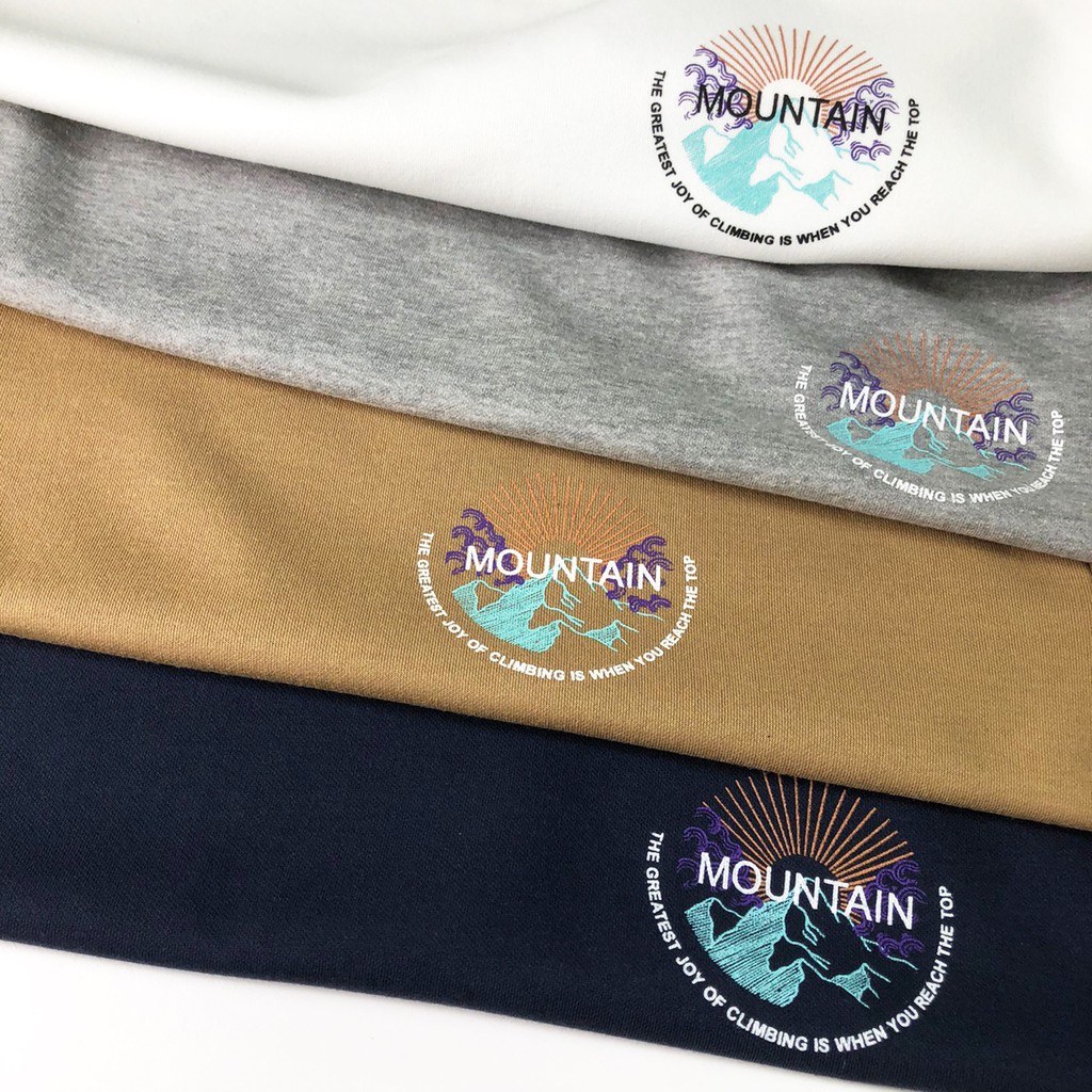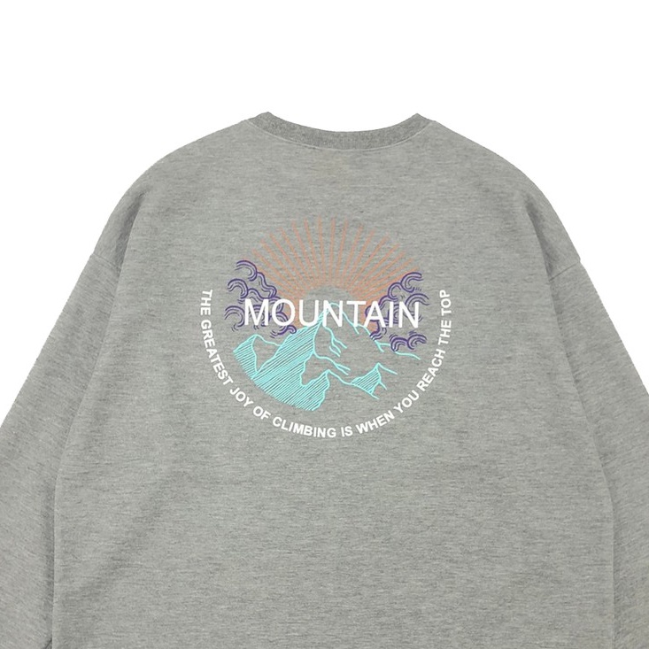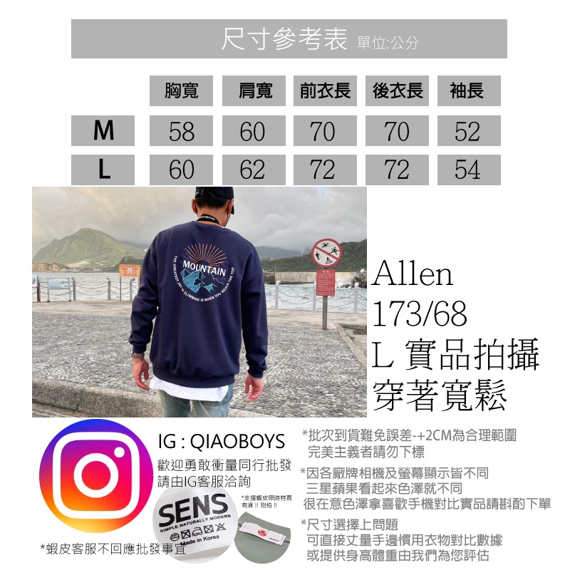 QIAO 韓國新貨 MOUNTAIN東洋 太空棉 山脈T 落肩 韓國大學T 長袖T 男生長袖 大學T 情侶 落肩大學T
