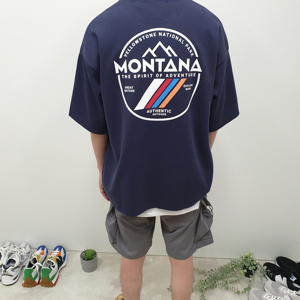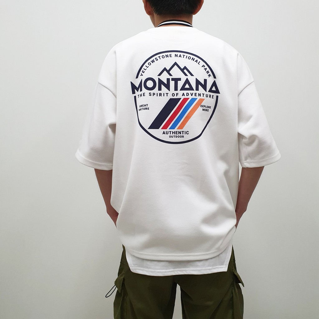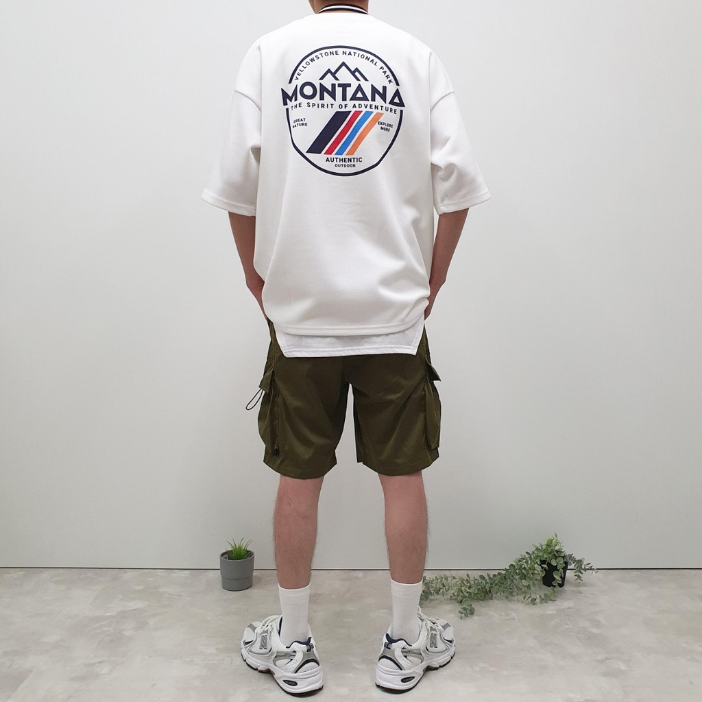 QIAO 韓國新貨 蒙大拿山峰 膠印 撞色 高磅數 太空棉 落肩 五分T 落肩短T 韓國男裝 韓國代購 T恤 重磅T
