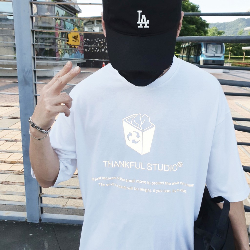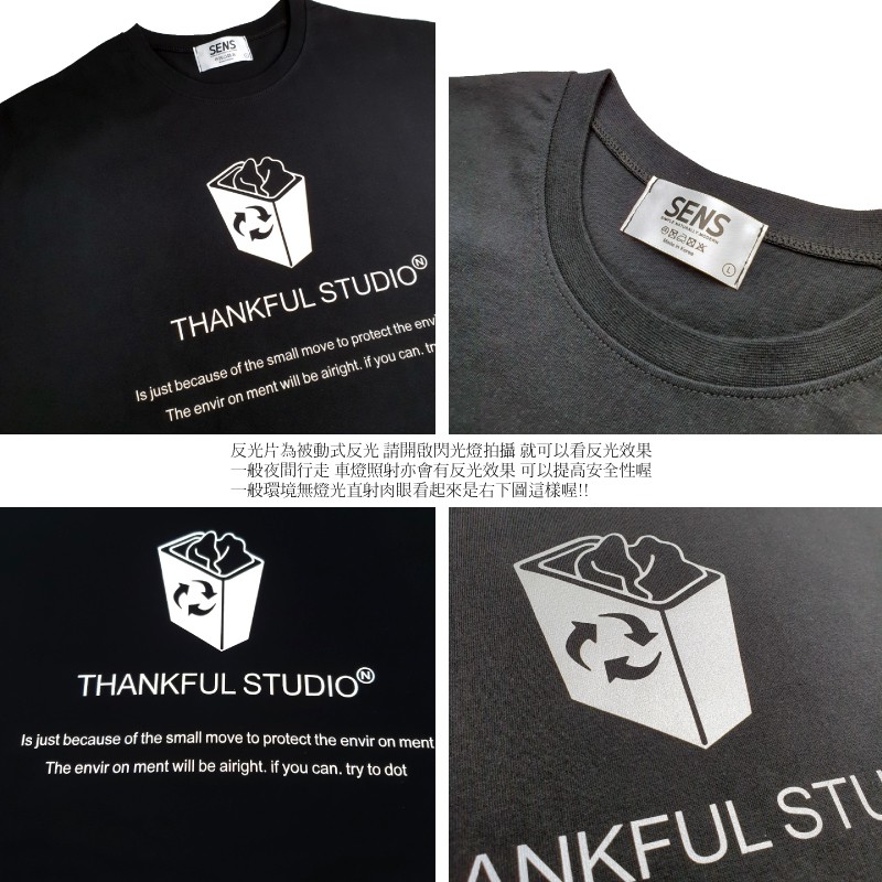 QIAO 韓國 反光 回收 標語 落肩T 五分袖 寬鬆 韓國男裝 韓國T恤 3M反光 反光T