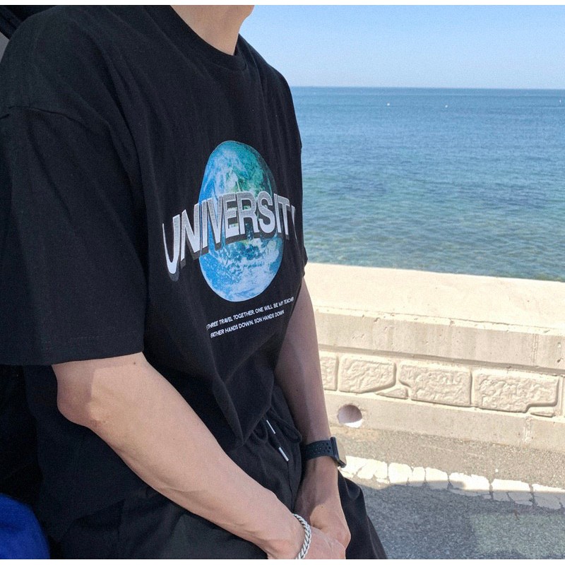 QIAO 韓國最秋新貨 uinversity東大紀念版 高磅 太空棉 落肩 寬T 五分T 韓國男裝 男裝 男生T恤