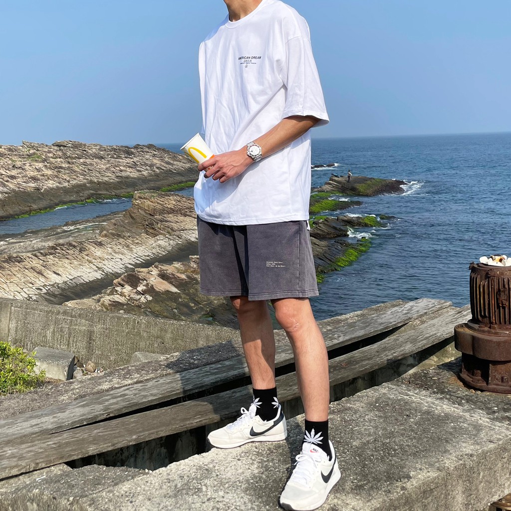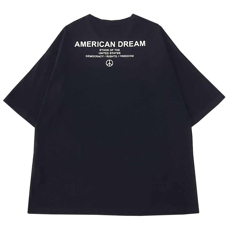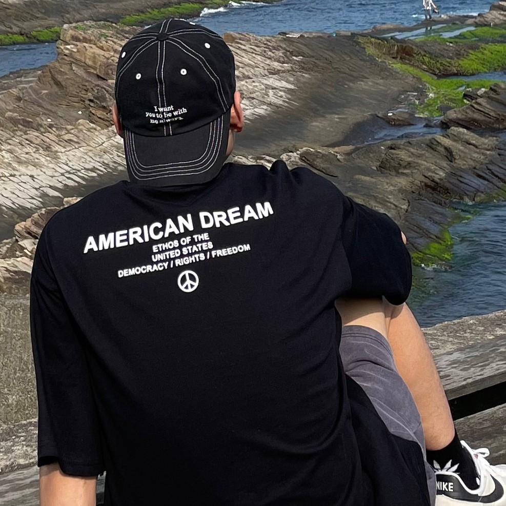 QIAO 韓國細絨棉 美國夢 和平概念 文字 設計款 落肩 寬鬆 五分袖 五分T 落肩T 短T 棉T 寬T 圖T 文字T