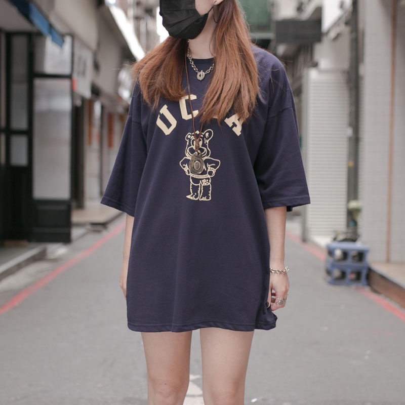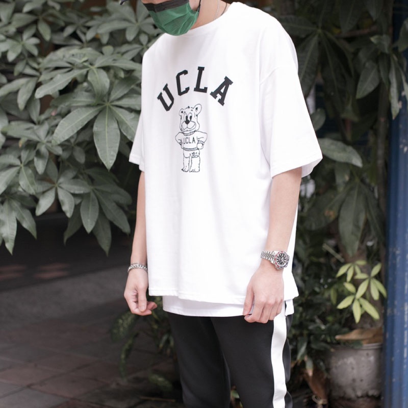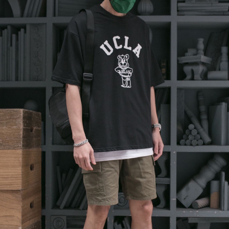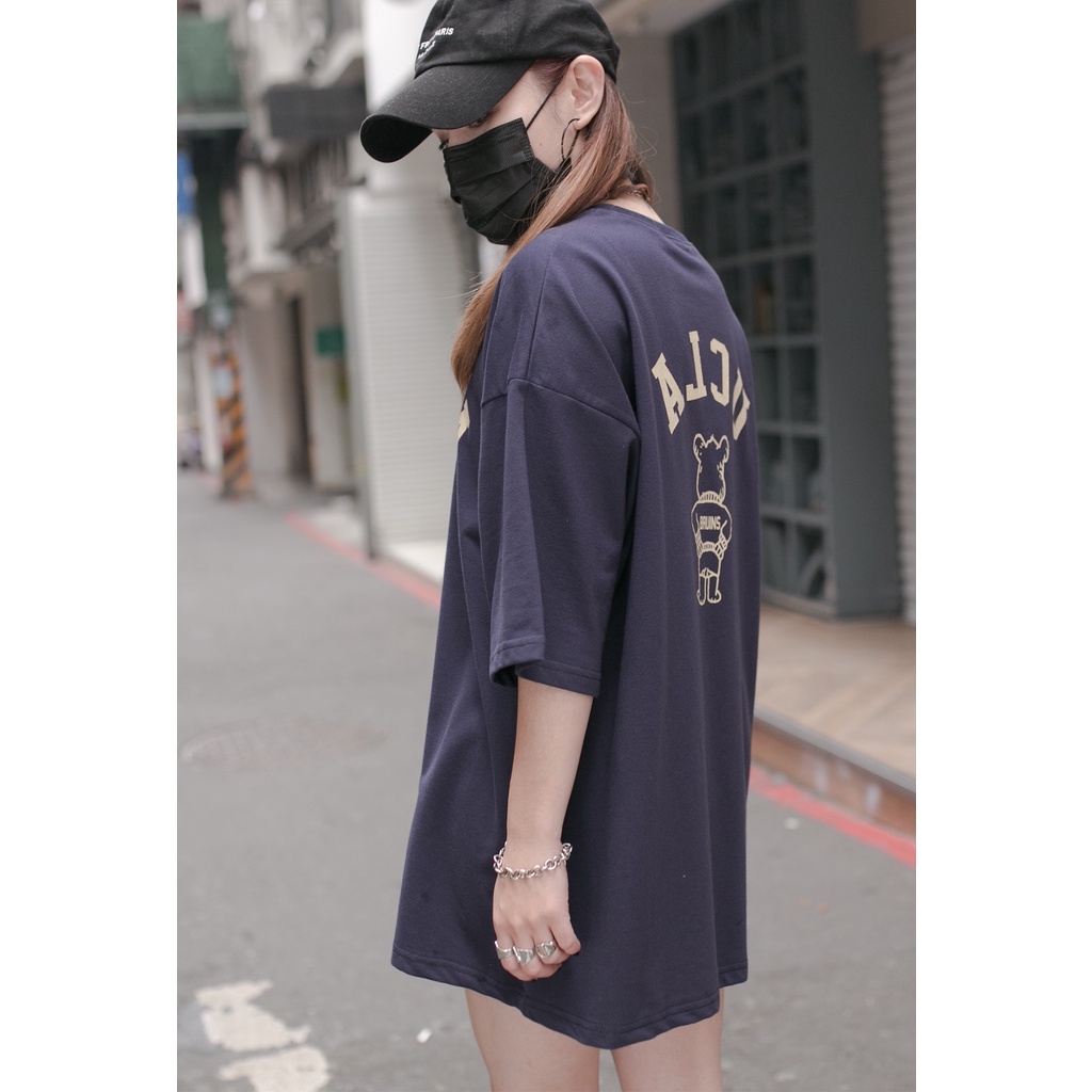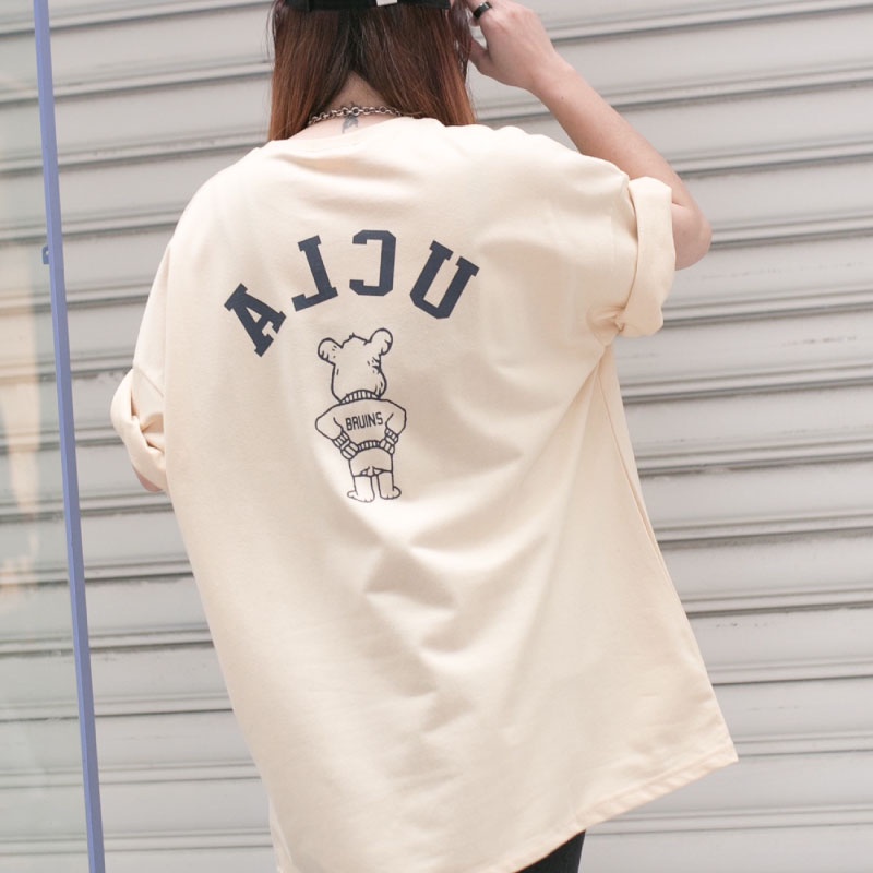 QIAO 韓國代購 UCLA 爆棚 超難買 情侶款 高挺細絨棉 落肩 寬鬆T 熊熊 韓國男裝 T恤 小姐姐 抖音 短t