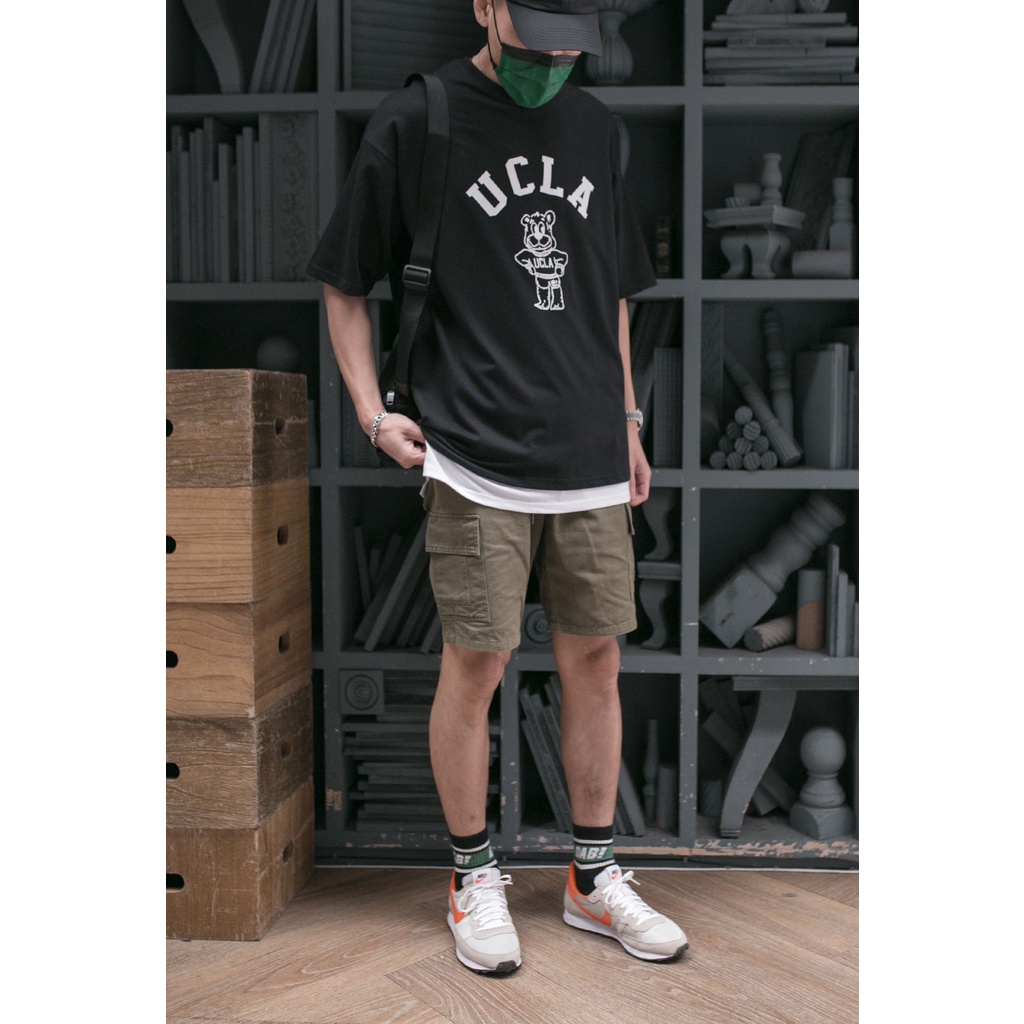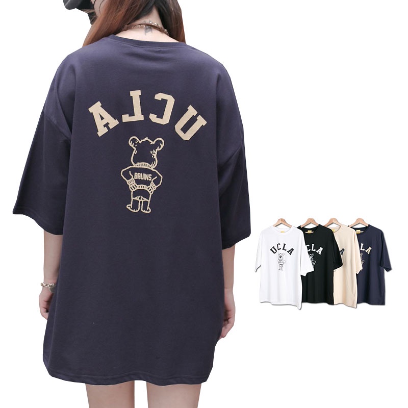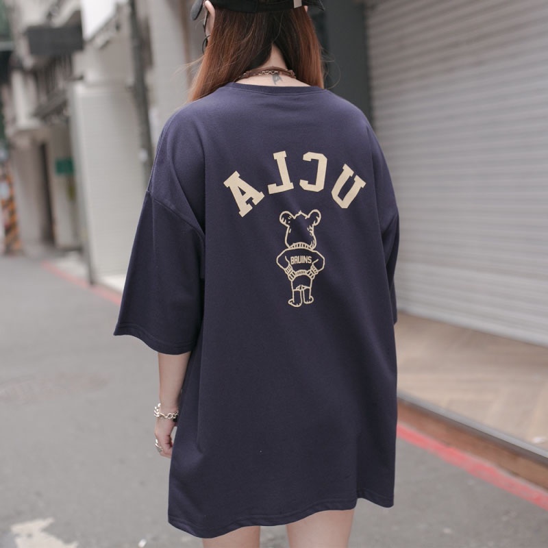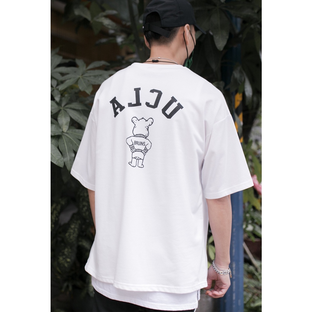 QIAO 韓國代購 UCLA 爆棚 超難買 情侶款 高挺細絨棉 落肩 寬鬆T 熊熊 韓國男裝 T恤 小姐姐 抖音 短t