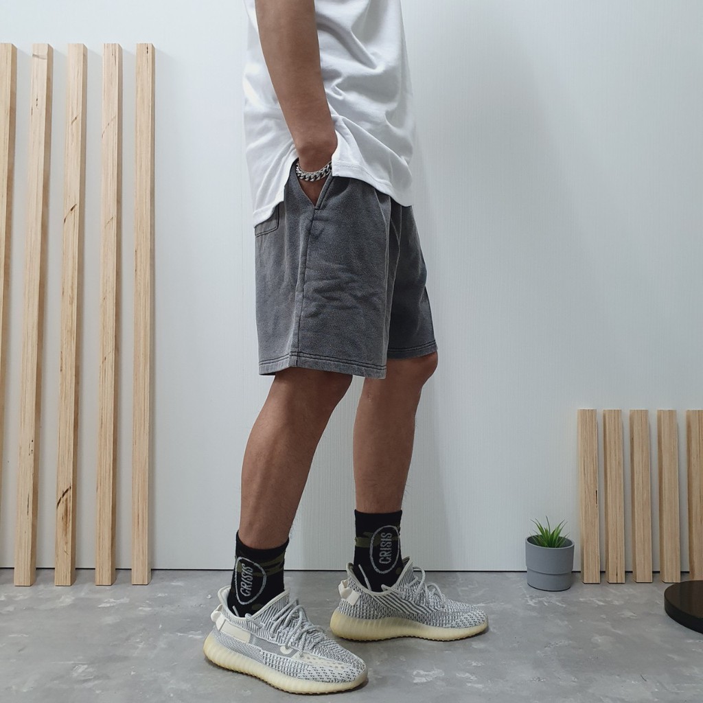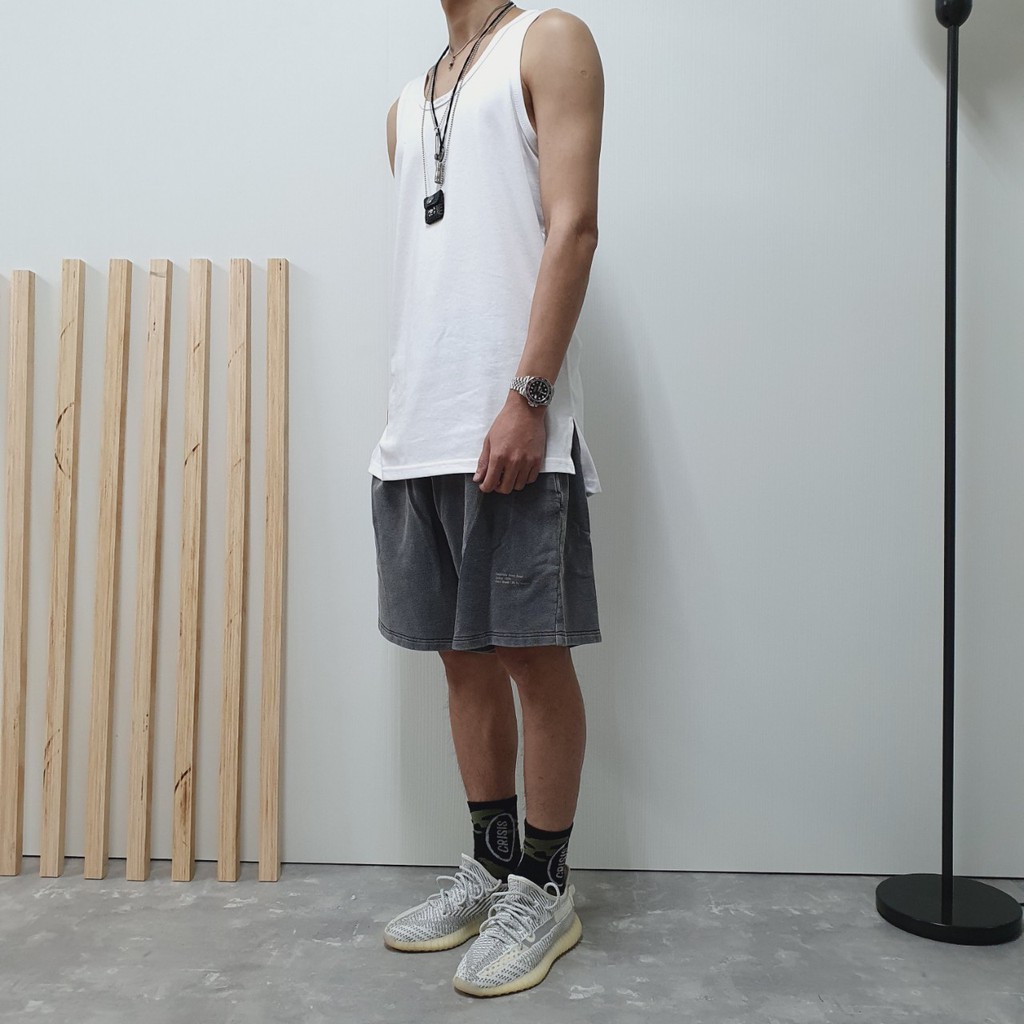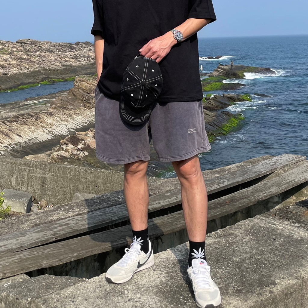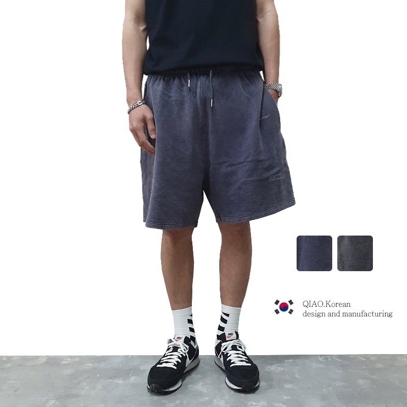 QIAO 韓國新貨 洗舊 男女穿 寬鬆短褲 休閒短褲 素色短褲 重磅 棉短褲 韓國短褲 短褲 男生短褲 棉褲