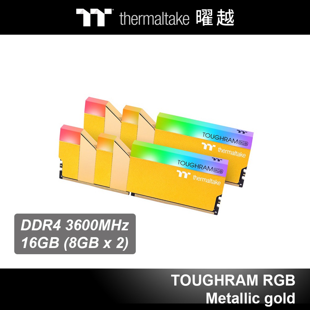 曜越 TOUGHRAM 鋼影 RGB 記憶體 DDR4 3600MHz 16GB (8GB x2) 尊爵金