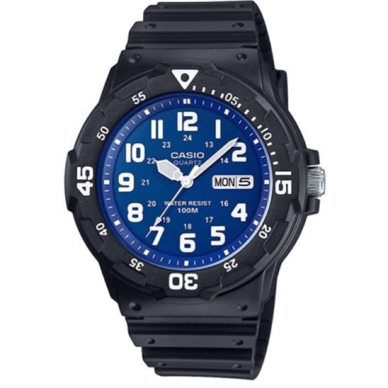 CASIO潛水風三點鐘方向獨立設計日期星期顯示窗防水100米(MRW-200H-2B2)(240 59)游泳.當兵學生錶