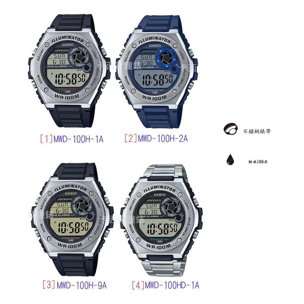 CASIO卡西歐多功能造型運動防水100米、LED照明MWD-100H-1A MWD-100HD-1A