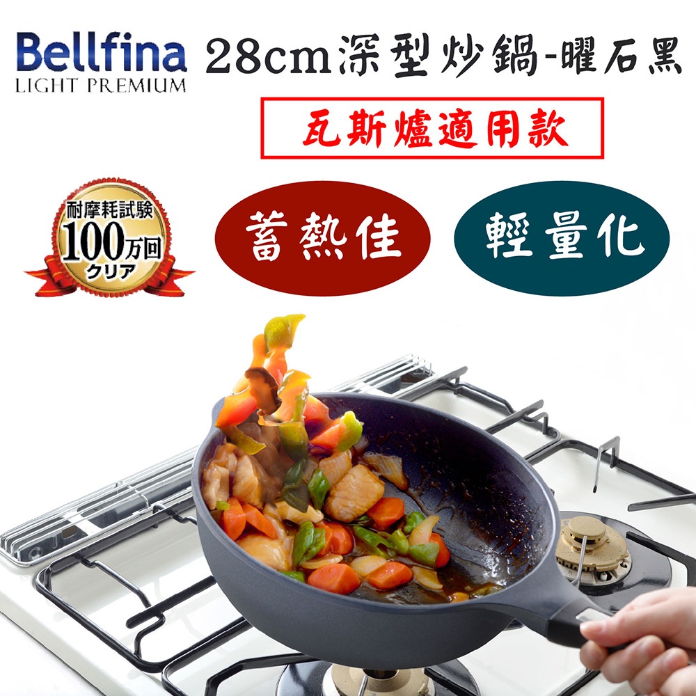日本Arnest Bellfina鑽石極輕不沾深炒鍋28cm-海軍藍/曜石黑/二色任選一(瓦斯爐適用款)