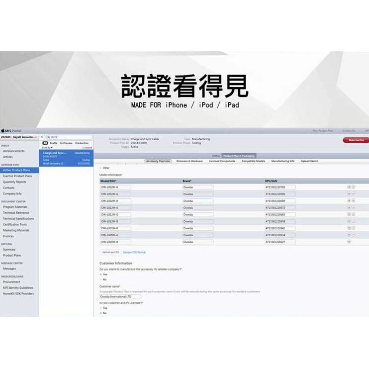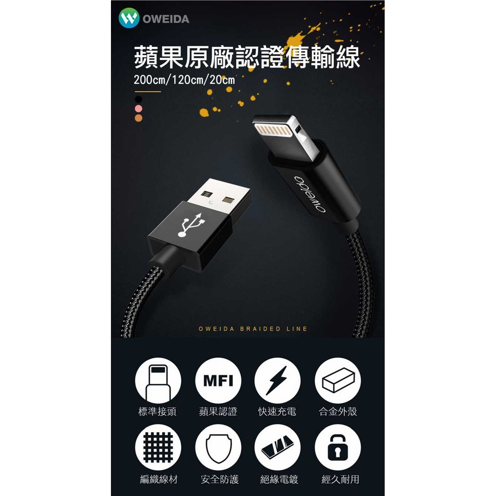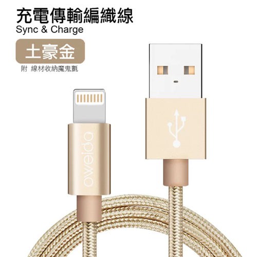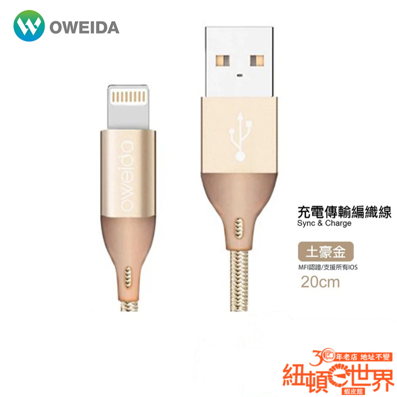 OWEIDA Apple MFi 高速傳輸充電線 200cm 香檳金 全新品開發票