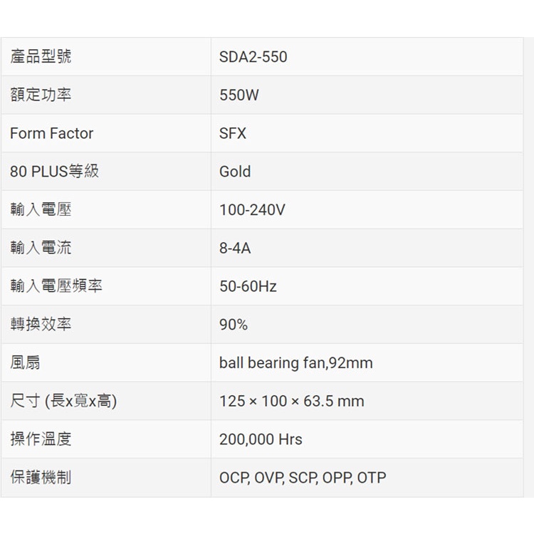 FSP 全漢 金鋼彈 550W SFX 小型 金牌 80+ 全模組 電源供應器 SDA2-550 /紐頓e世界