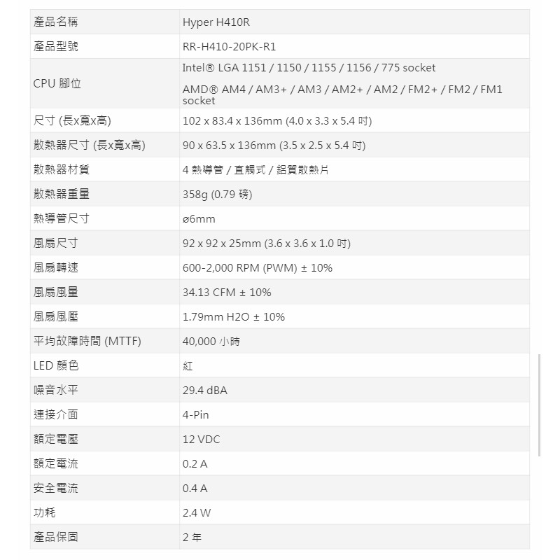 Cooler Master 酷碼 HYPER H410R 紅光 LED 直觸式熱導管 CPU散熱器 高13.6CM