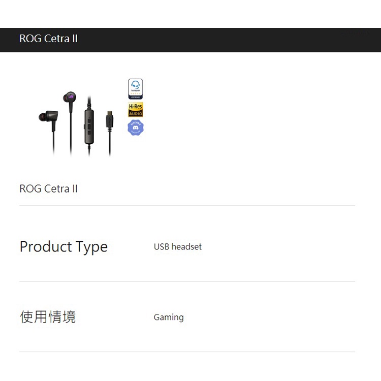 ASUS 華碩 ROG Cetra II RGB 入耳式 電競 耳機麥克風 USB-C 接頭 降噪 耳麥 /紐頓e世界