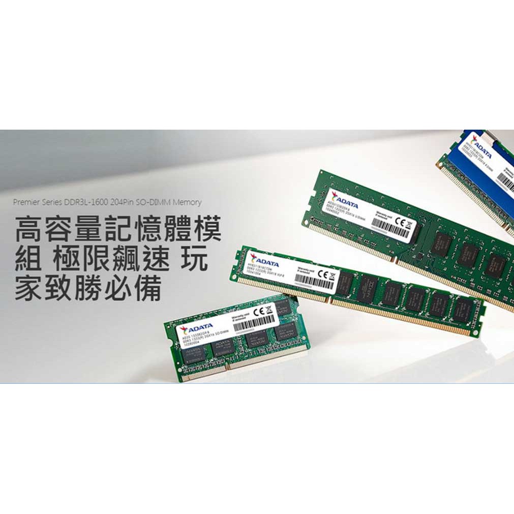 ADATA 威剛 8GB DDR3L 1600 SODIMM 筆記型電腦 記憶體 NB RAM (低電壓 1.35V)