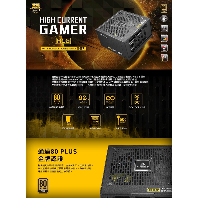 Antec 安鈦克 HCG1000 GOLD 1000W 80+金牌 全模組 日系電容 電源供應器 /紐頓e世界