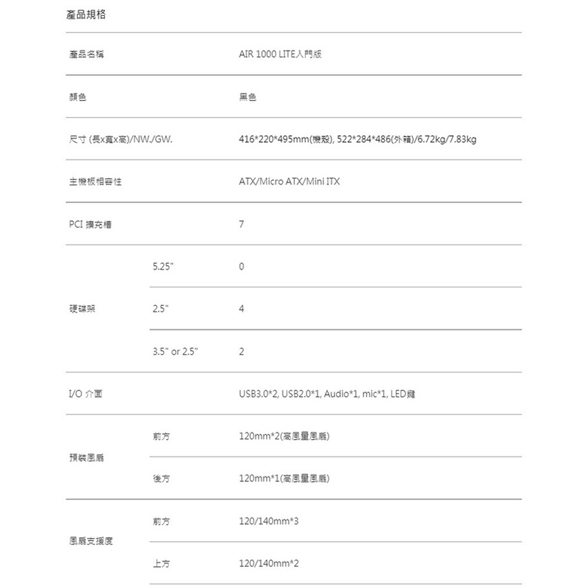 MONTECH 君主 AIR 1000 LITE 玻璃透側 ATX 電腦機殼 黑色 /紐頓e世界