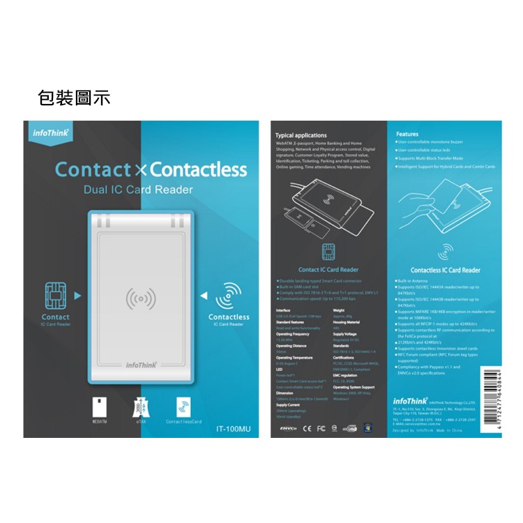 InfoThink 訊想 IT-100MU 晶片卡 / 感應卡 NFC 雙介面 讀卡機 全新品開發票