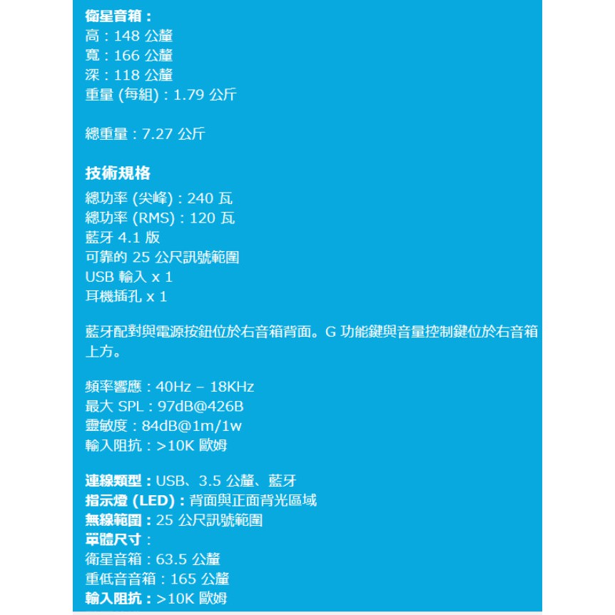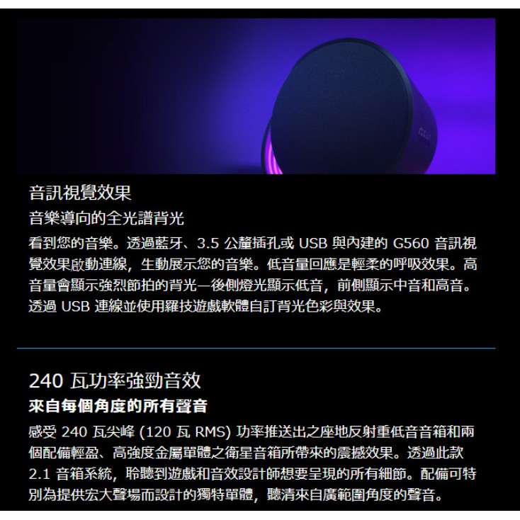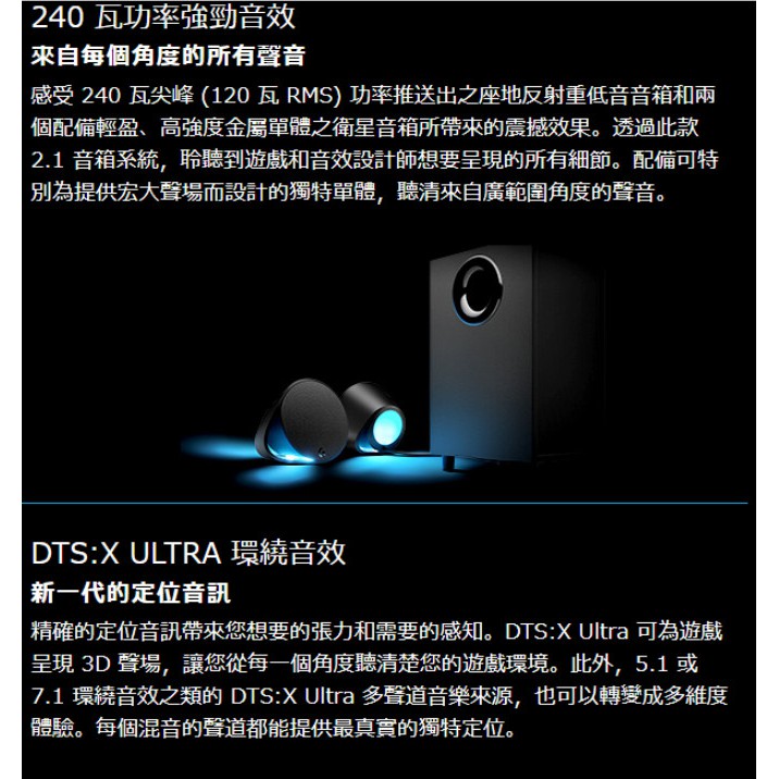 Logitech 羅技 G560 LIGHTSYNC PC RGB 電競 遊戲音箱 遊戲喇叭