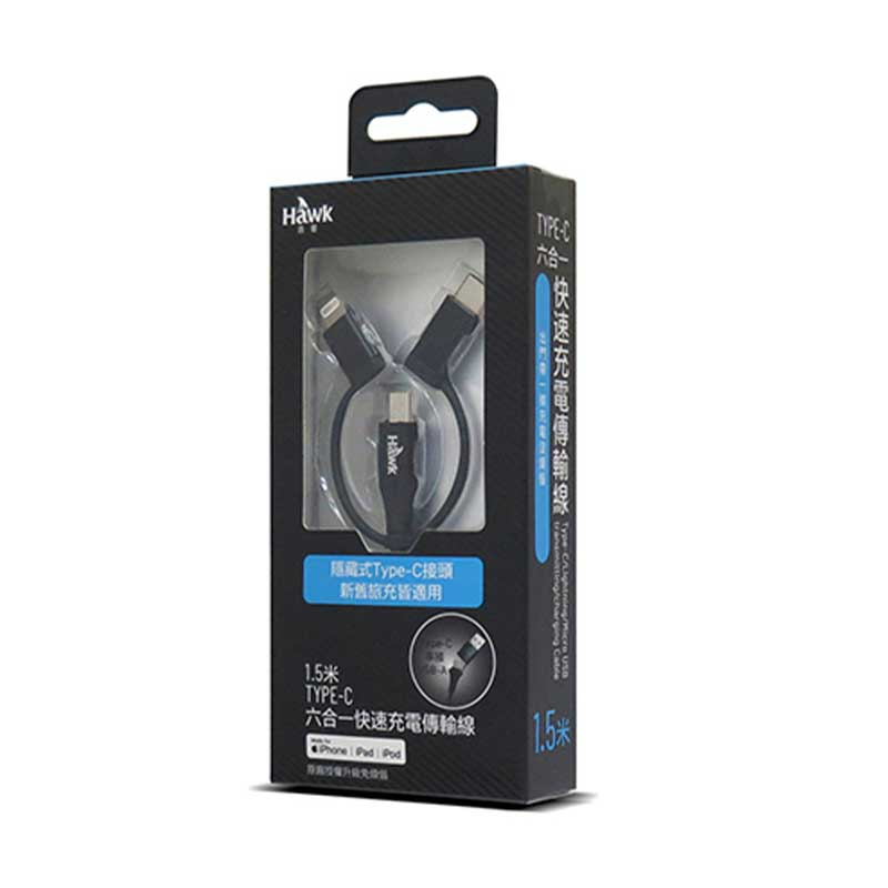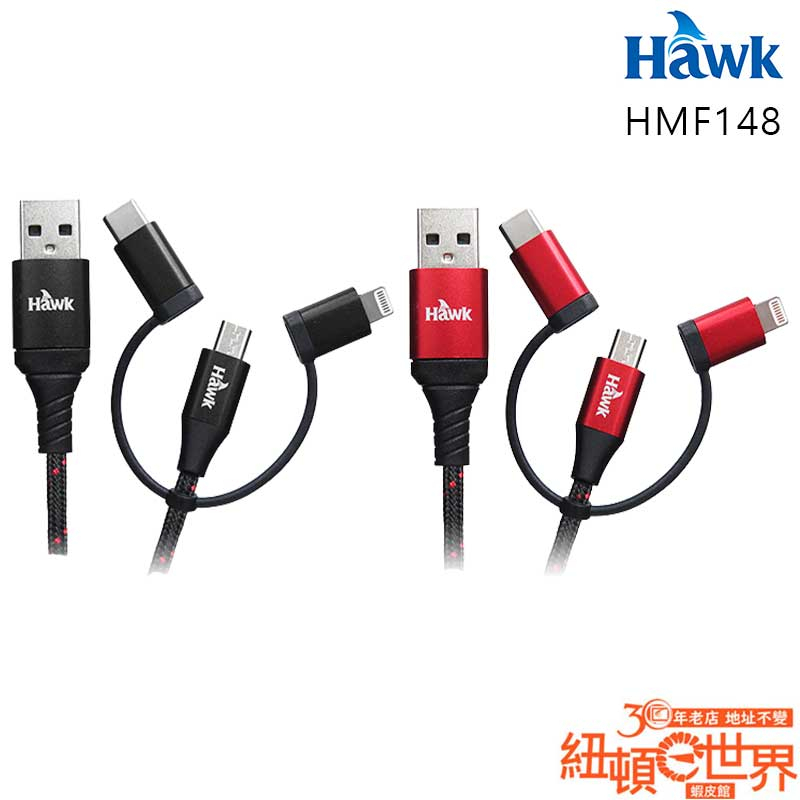 HAWK 浩客 HMF148 Type-C 六合一 1.5M 充電 傳輸線 黑色 紅色 /紐頓e世界