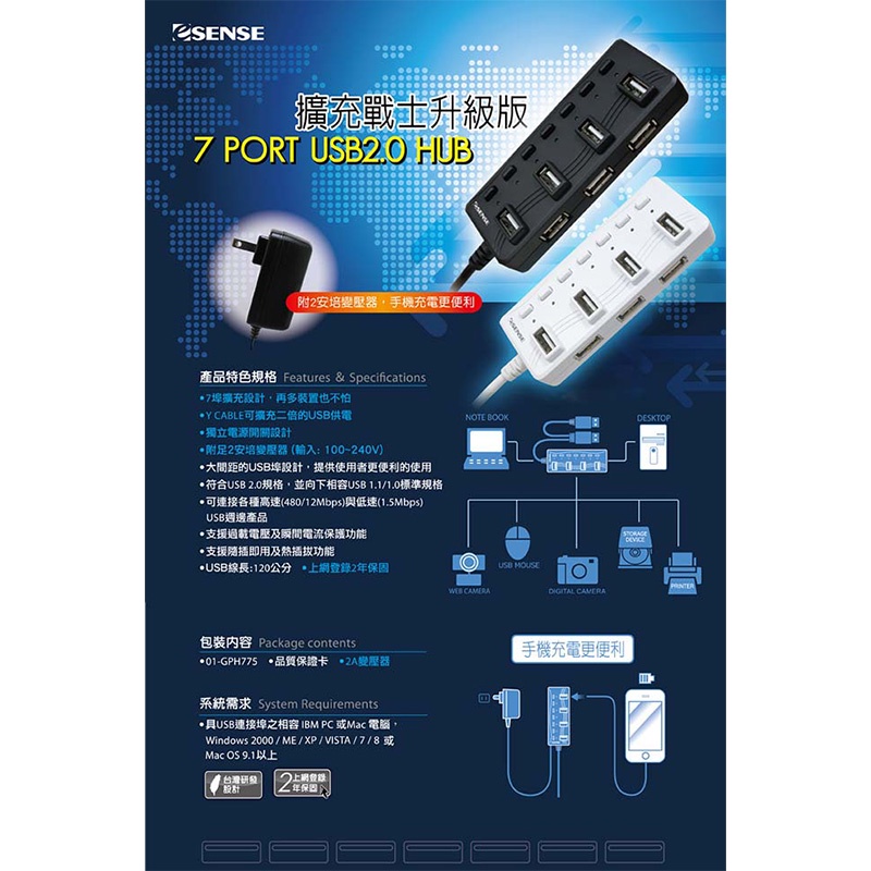 Esense 逸盛 擴充戰士升級版 H775 7 HUB集線器 黑色 01-GPH775BK /紐頓e世界