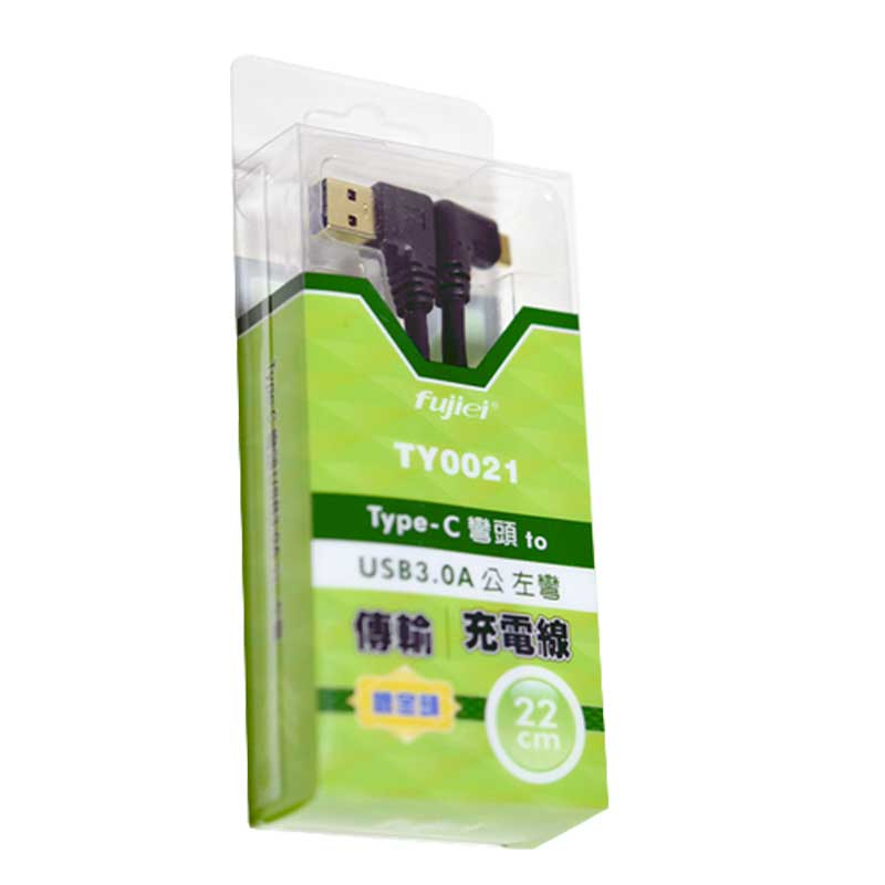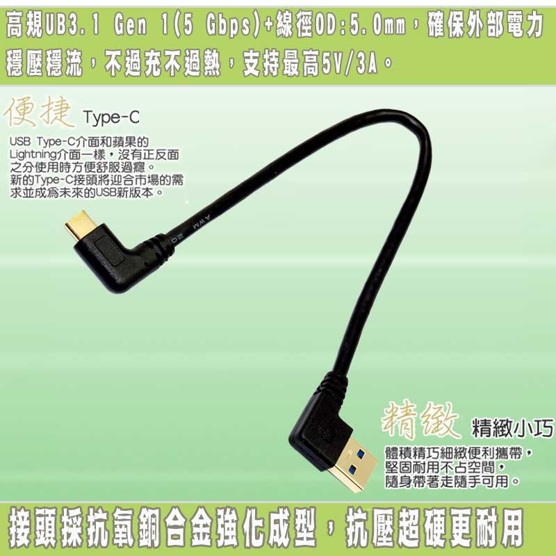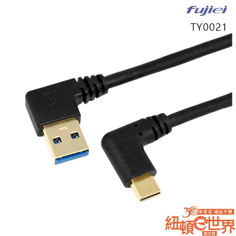 Fujiei 力祥 TY0021 Type-C 轉 USB3.0 A公 22cm 鍍金頭 左彎 傳輸線 /紐頓e世界