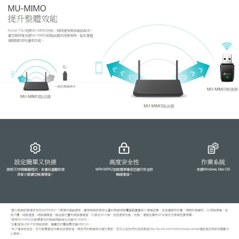 TP-LINK Archer T3U AC1300 MU-MIMO 迷你 USB 無線 網卡 紐頓e世界