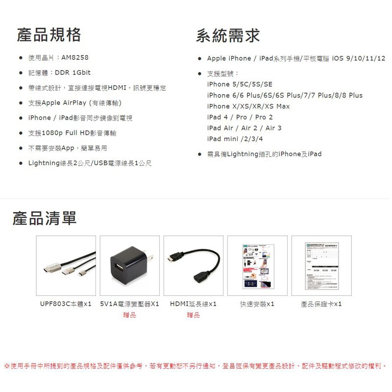 UPMOST 登昌恆 UPF803C iPhone / iPad 影音分享線 /紐頓e世界