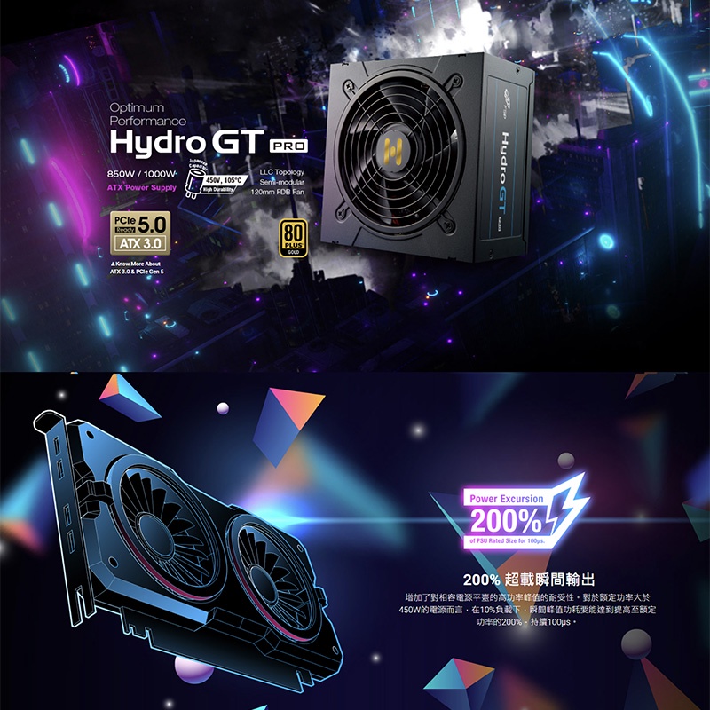 FSP 全漢 HGT-1000,Gen5 ATX3.0 1000W 80PLUS 金牌 電源供應器 /紐頓e世界