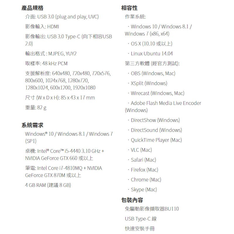 AverMedia 圓剛 BU110 免驅動影像擷取器 即時手機直播 紐頓e世界