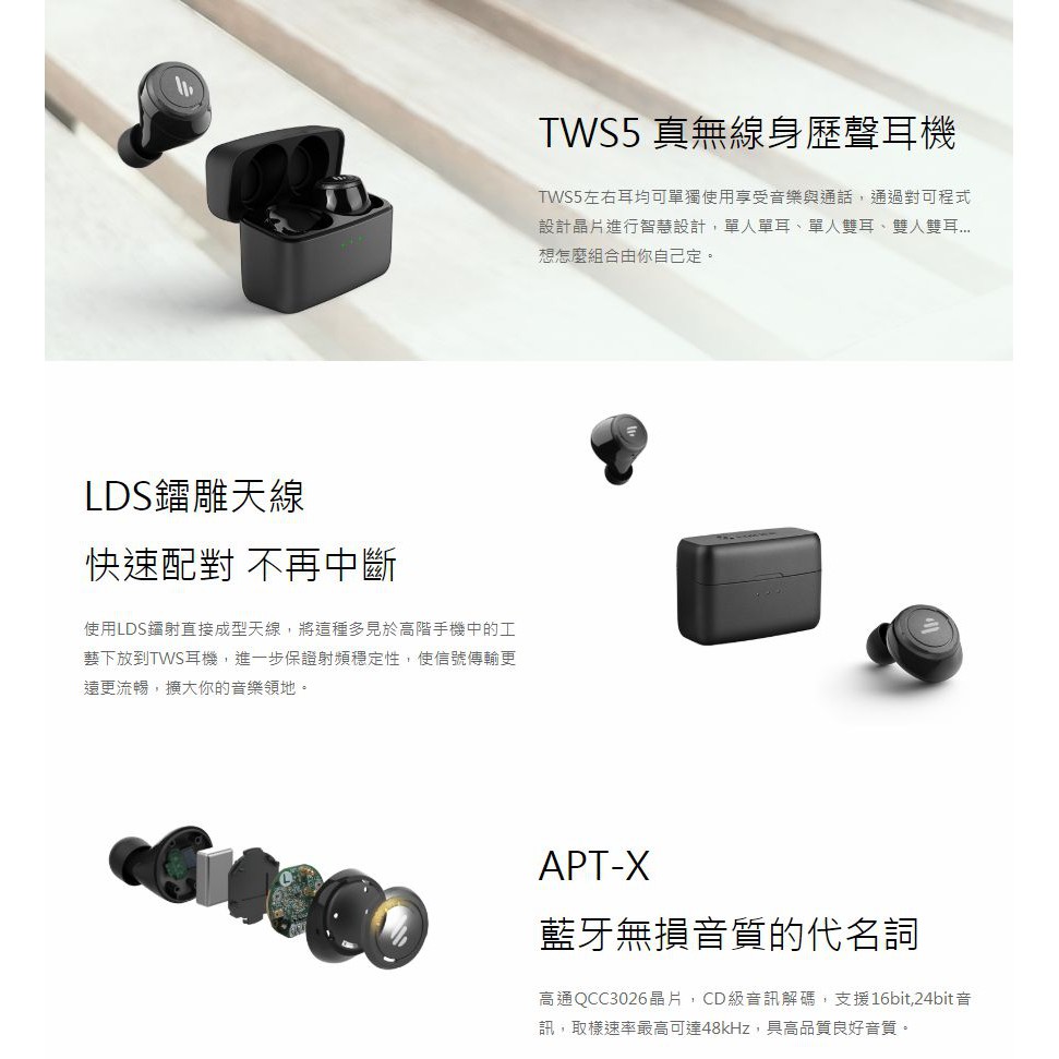 EDIFIER 漫步者 TWS5 藍牙5.0 真無線 藍牙耳機 APT-X /紐頓e世界