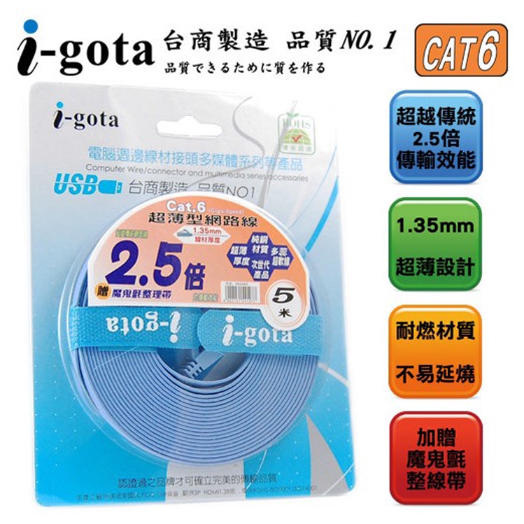 i-gota Cat.6 5米 5m 超薄型網路扁線 RJ45 網路線 FRJ4505 /紐頓e世界