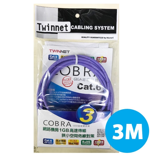 TWINNET COBRA CAT.6 3米 超細網路線