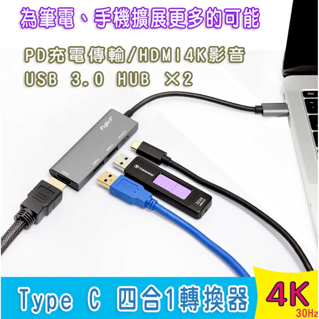 fujiei 力祥 TY1038 4合1轉換器 Type-C轉USB3.0*2 + HDMI + PD
