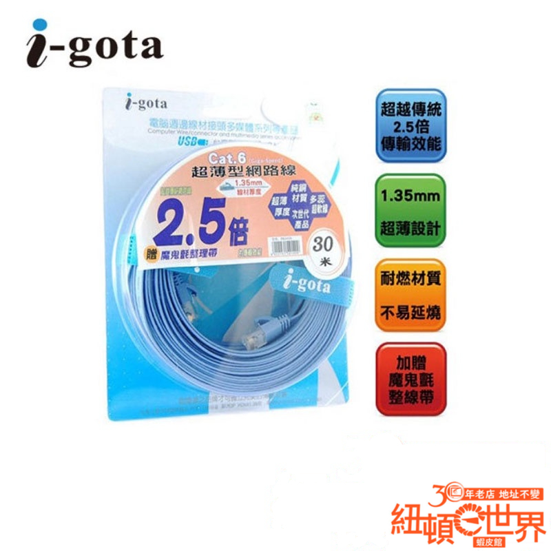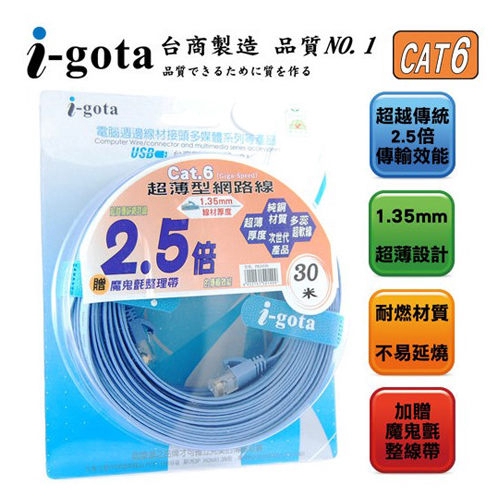 i-gota Cat.6 30米 30m 超薄型網路扁線 RJ45 網路線 FRJ4530