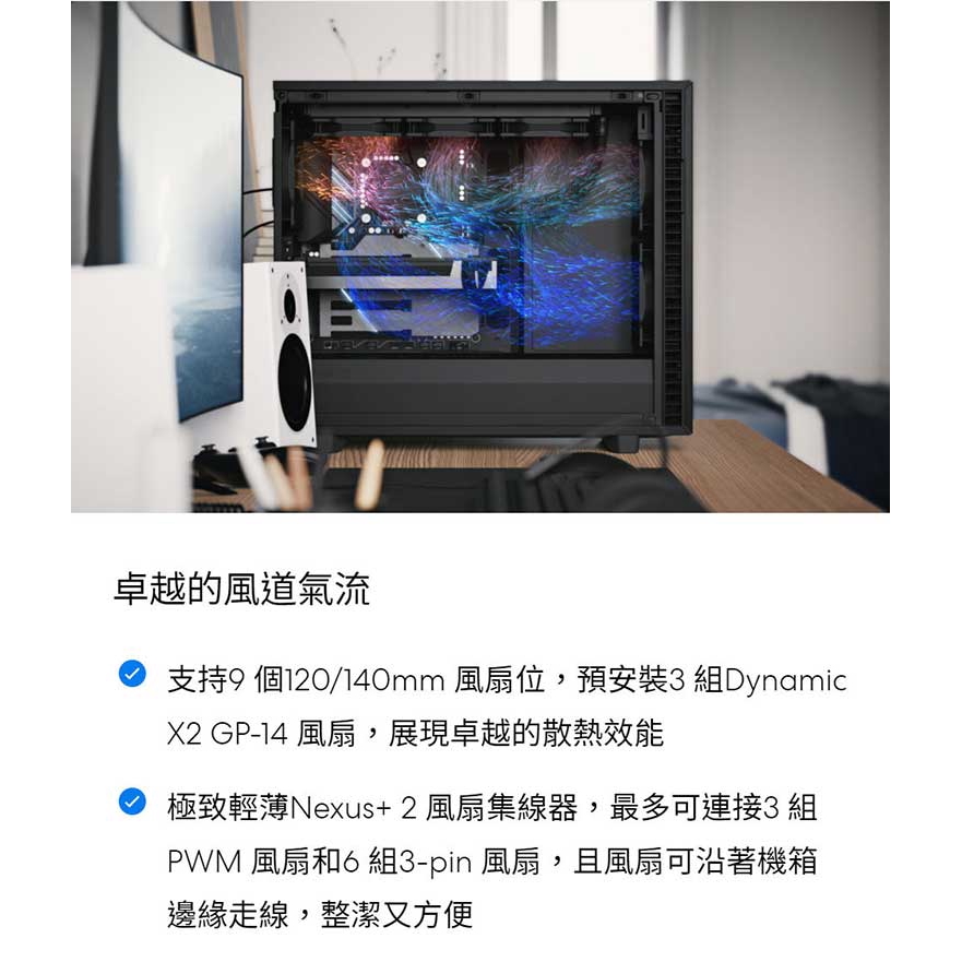 FractalDesign Define7 Light TG 淺透側 E-ATX 機殼 黑 FD-C-DEF7A-02