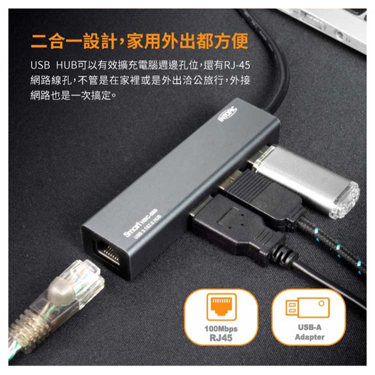 INTOPIC 廣鼎 HBC-580 USB Type-C RJ45 鋁合金 附USB-A轉接頭 集線器 HUB