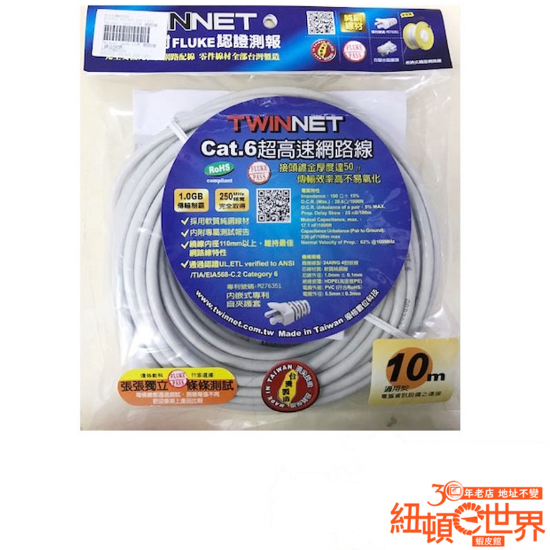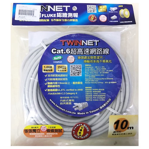 TWINNET Cat.6 10米 高速網路線 鍍金接頭