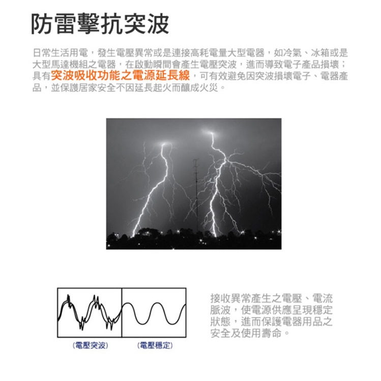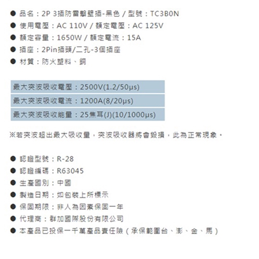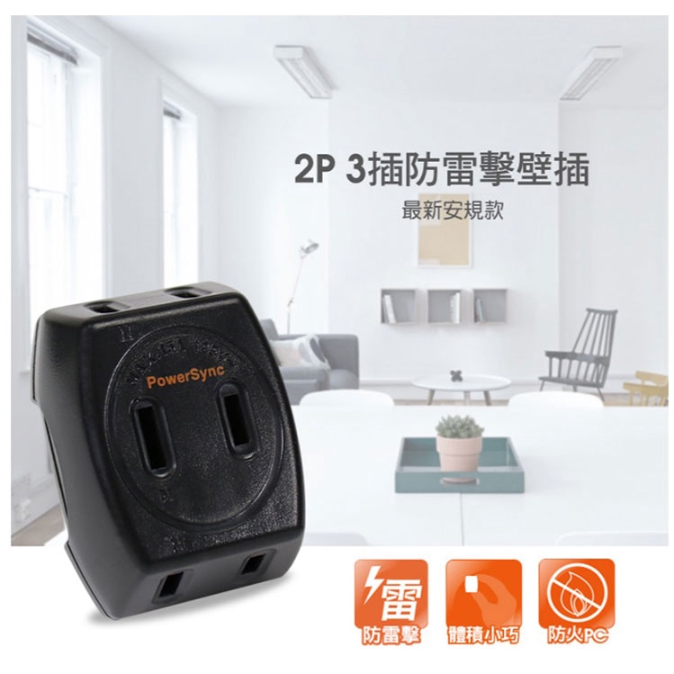 PowerSync 群加 包爾星克 TC3B0N 2P 3插防雷擊壁插 黑色 /紐頓e世界
