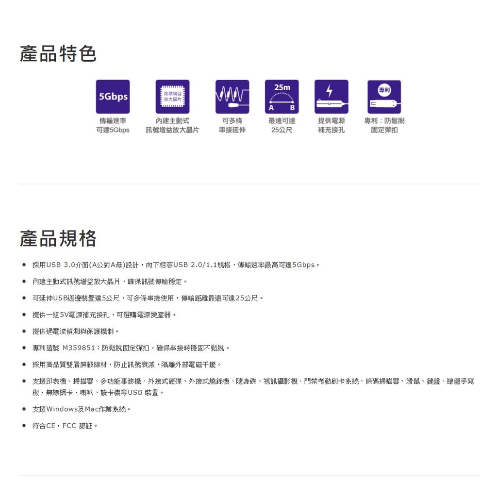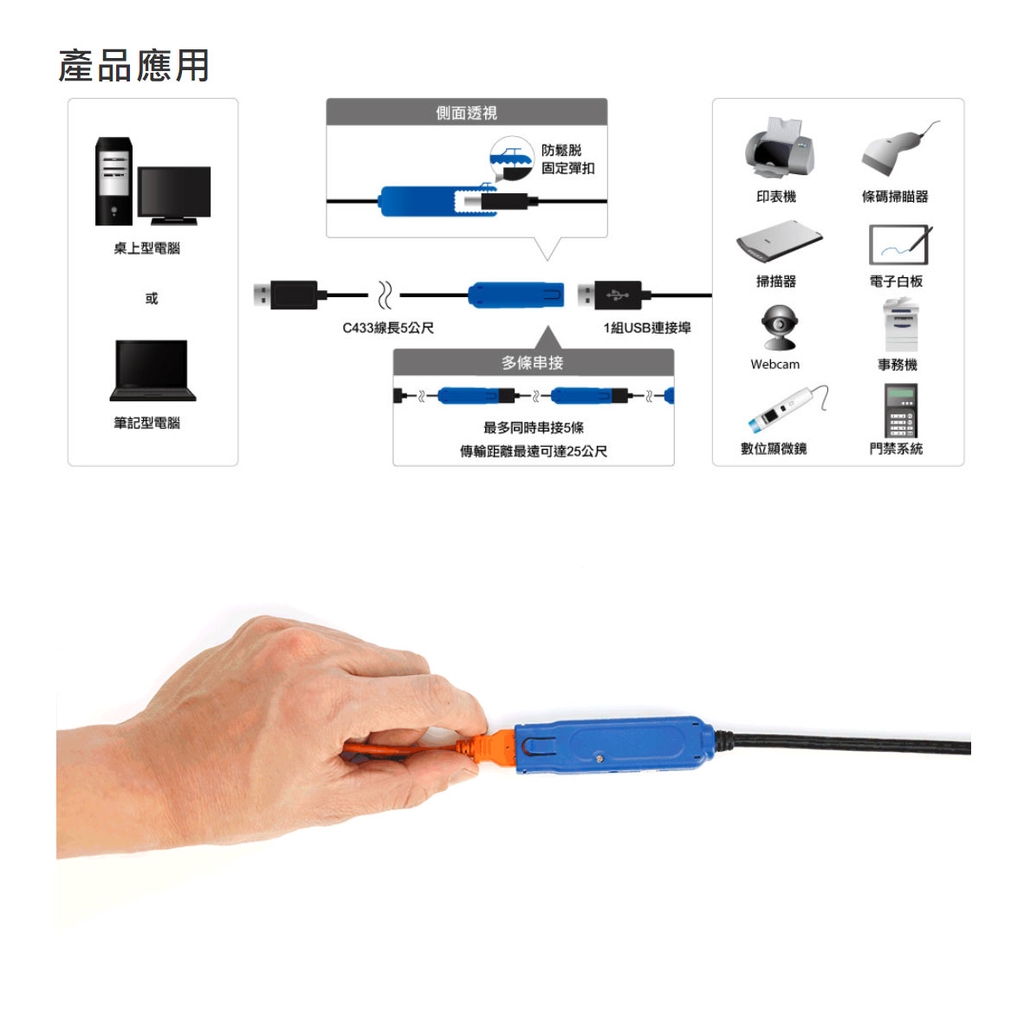 Uptech 登昌恆 C433 USB 3.0 5米 主動式 訊號放大 延伸線