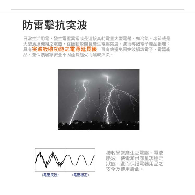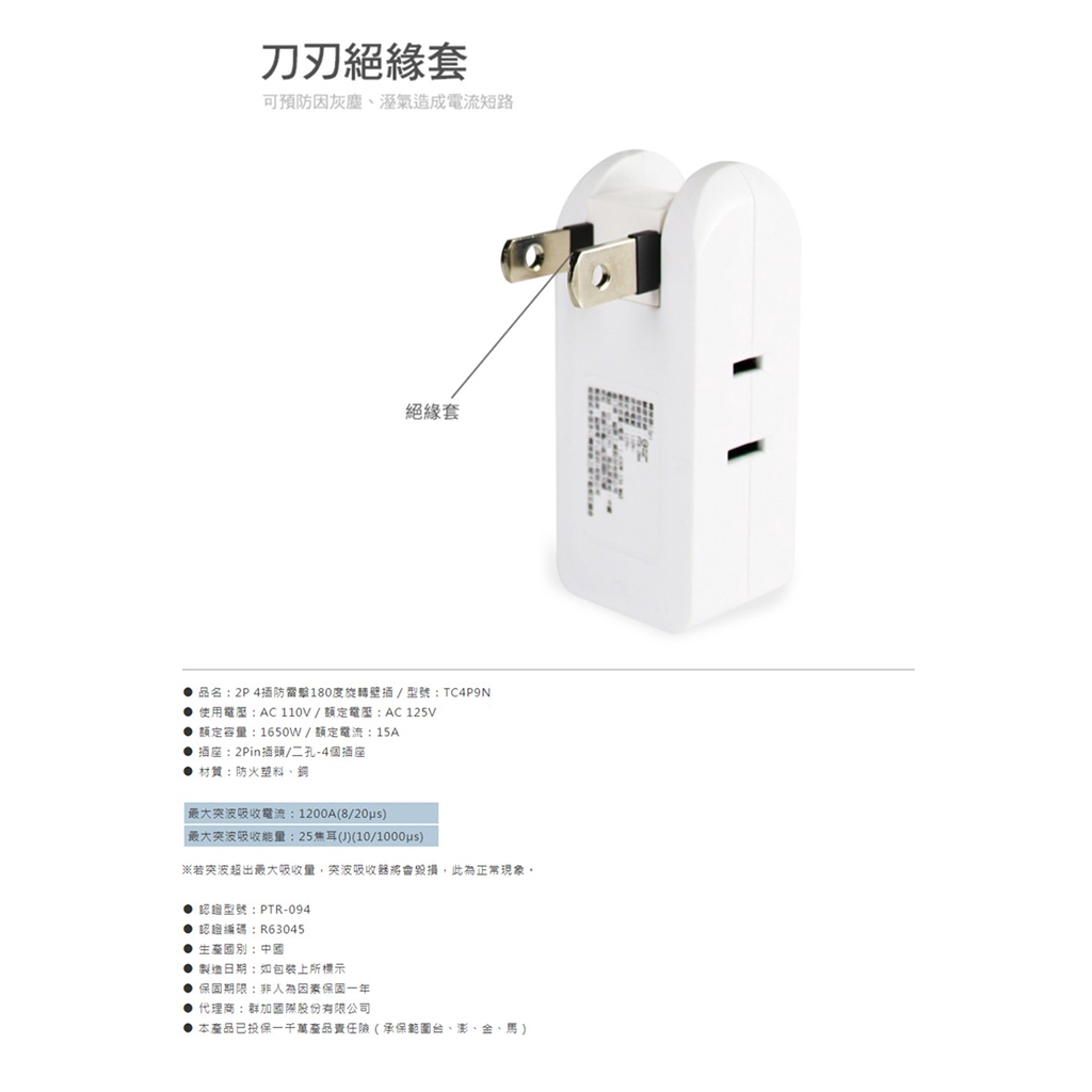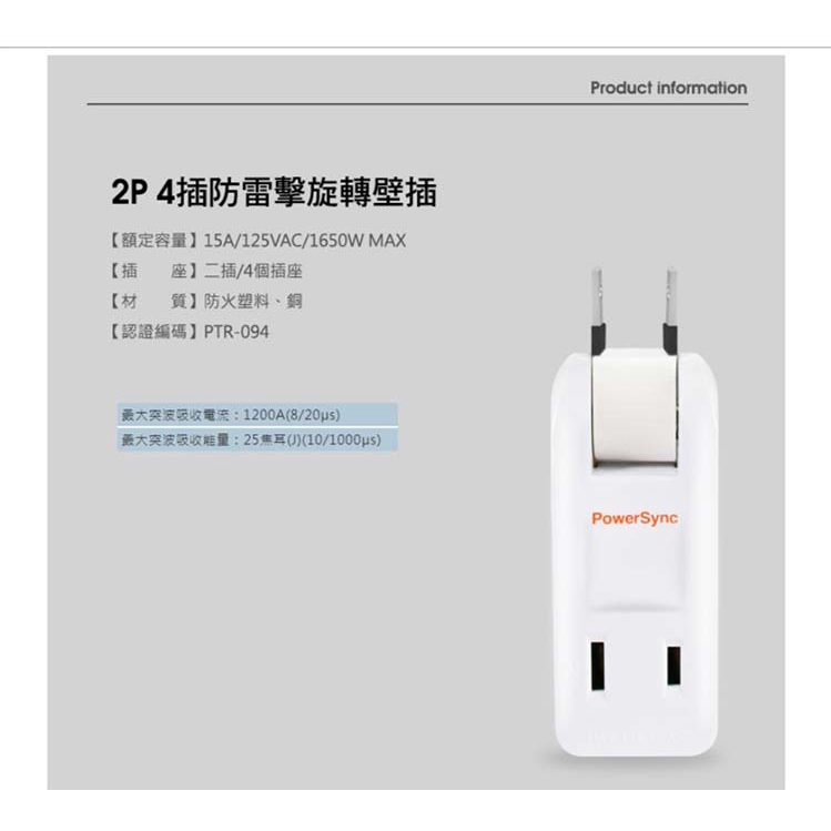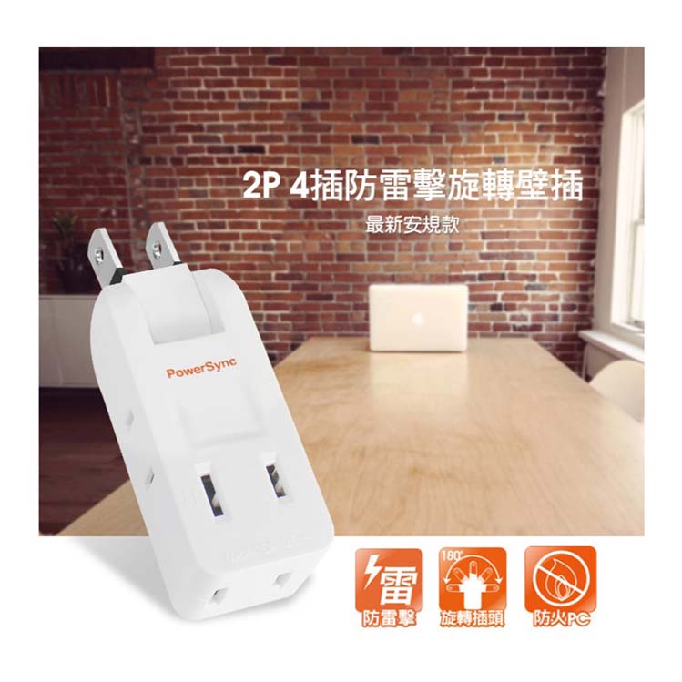 PowerSync 群加 包爾星克 TC4P9N 2P 4插 防雷擊 180度旋轉 壁插 白色 /紐頓e世界