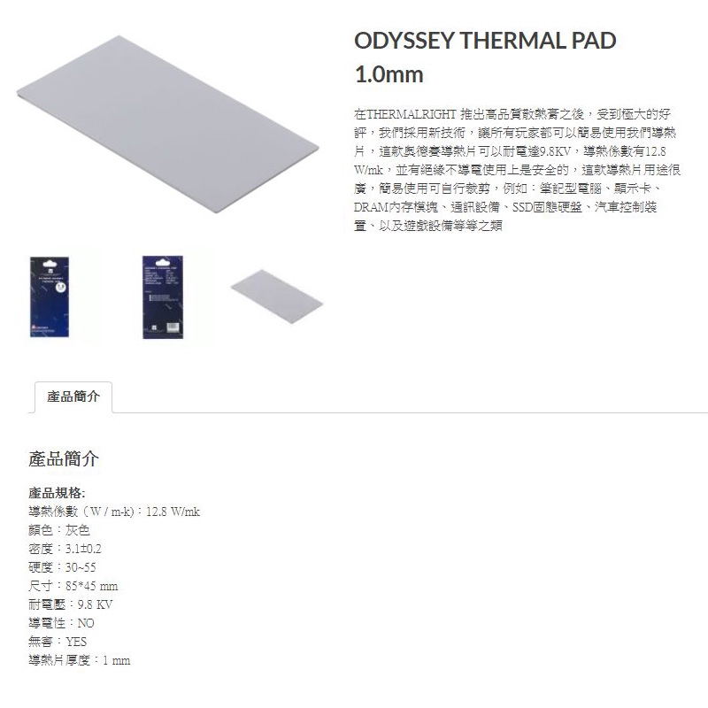 THERMALRIGHT ODYSSEY 奧德賽 THERMAL PAD 1.0mm 導熱片 /紐頓e世界