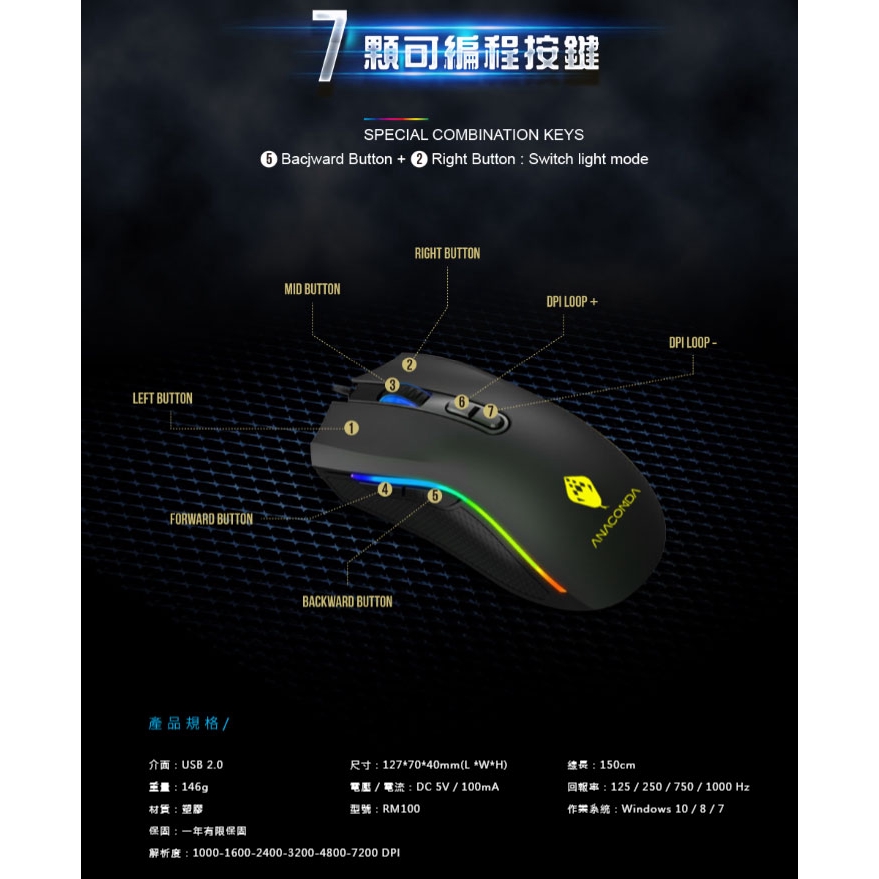 ANACOMDA 巨蟒 RM100 RGB可編輯電競滑鼠
