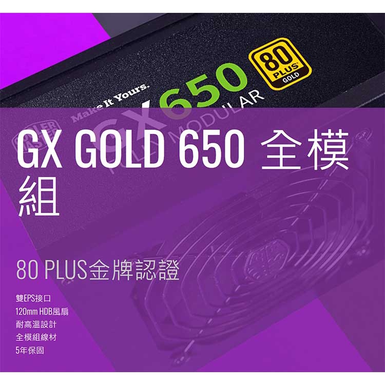 Cooler Master 酷碼 GX650 650W 電源供應器 金牌 全模組 GX GOLD 12CM