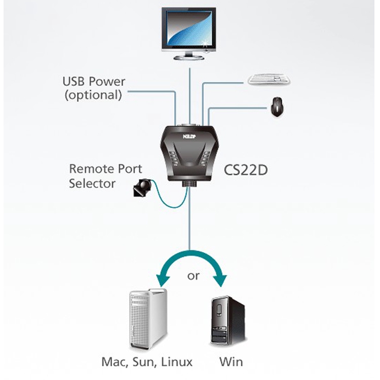 ATEN CS22D 2埠USB DVI KVM 電腦 切換器