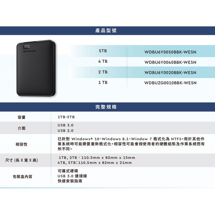 WD Elements 5TB 2.5吋 USB 3.0 外接硬碟 WDBU6Y0050BBK-WESN /紐頓e世界